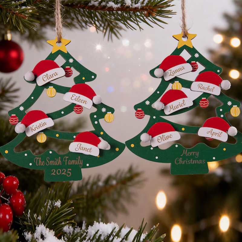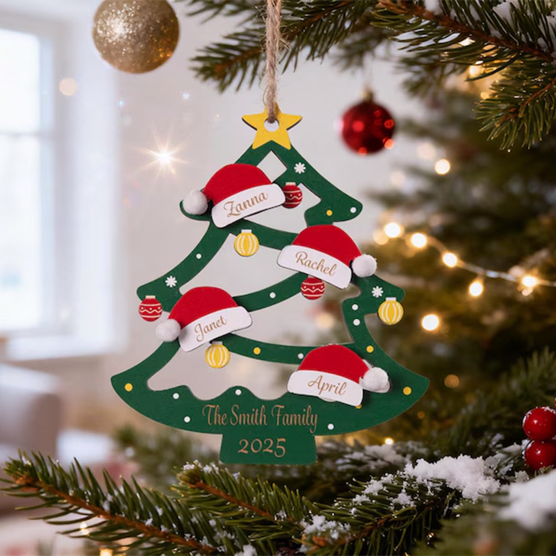 Personalized Family Tree Ornament 2025, Custom Family With Pet Ornament