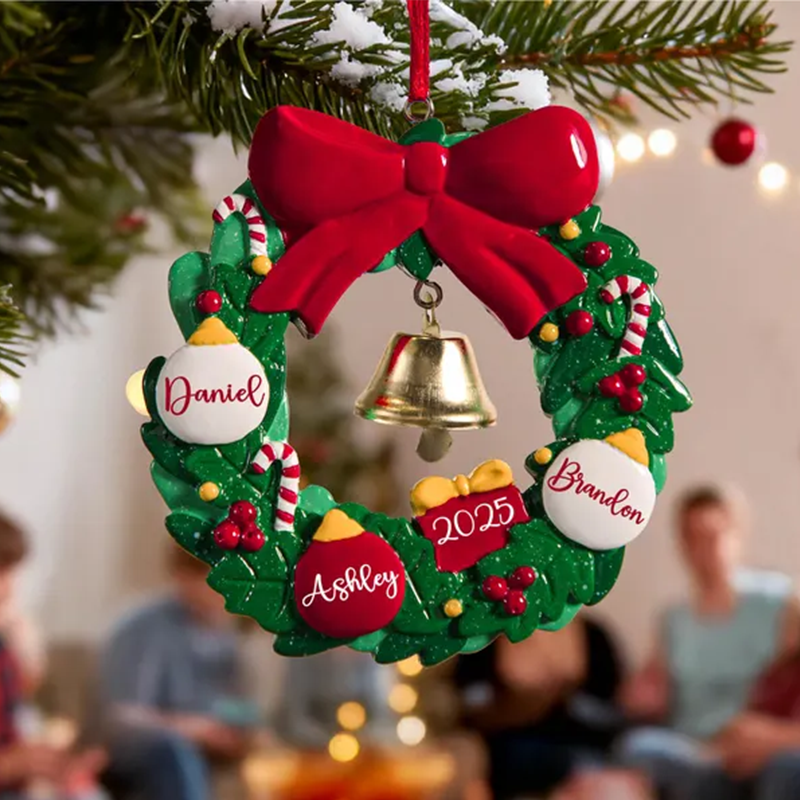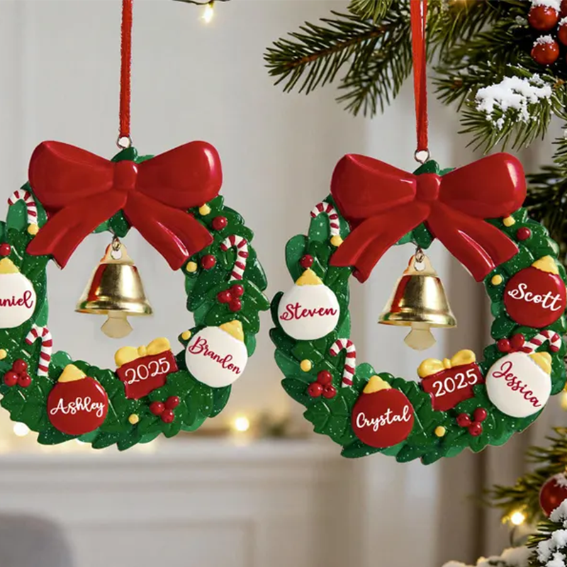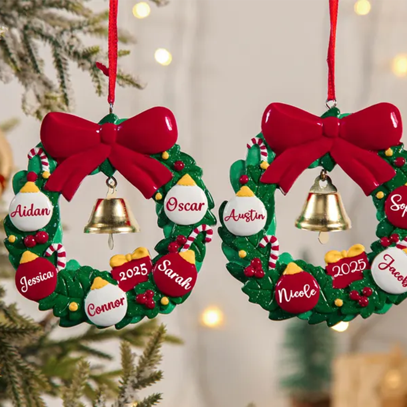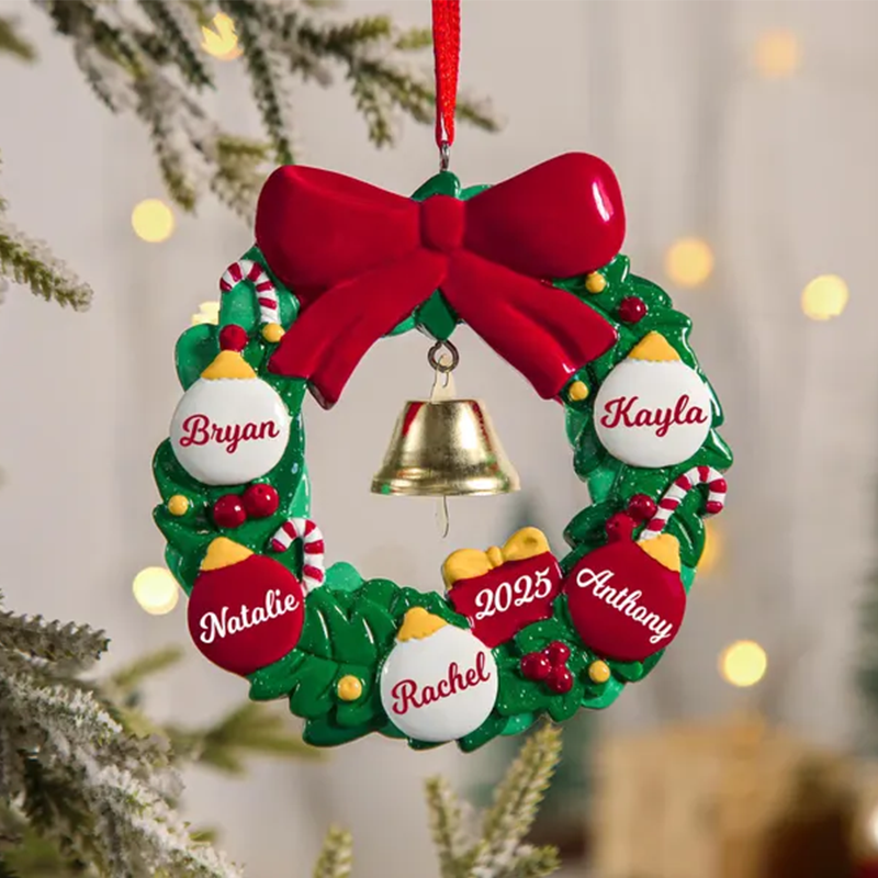 Celebrate your family this holiday season with a truly special keepsake: our Personalized 2025 Family Christmas Ornament. Designed with love and crafted in durable, high-quality resin, this charming wreath-shaped ornament features a bold red bow at the top and delicate glowing bulbs around the ring — each one personalized with a family member’s name.