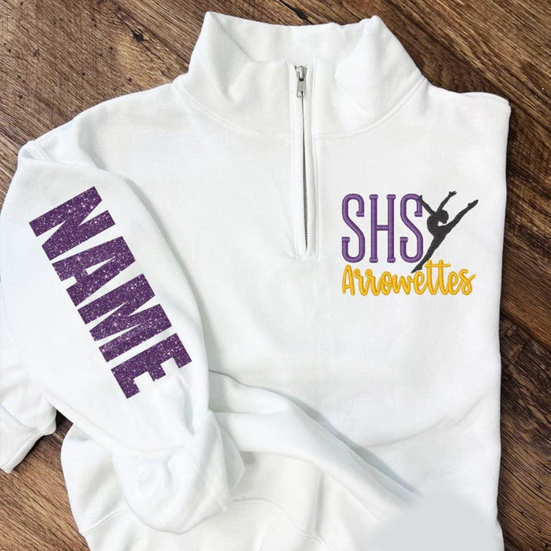ADULT - Cheer Mascot Quarter zip Pullover with Name on Sleeve in Glitter