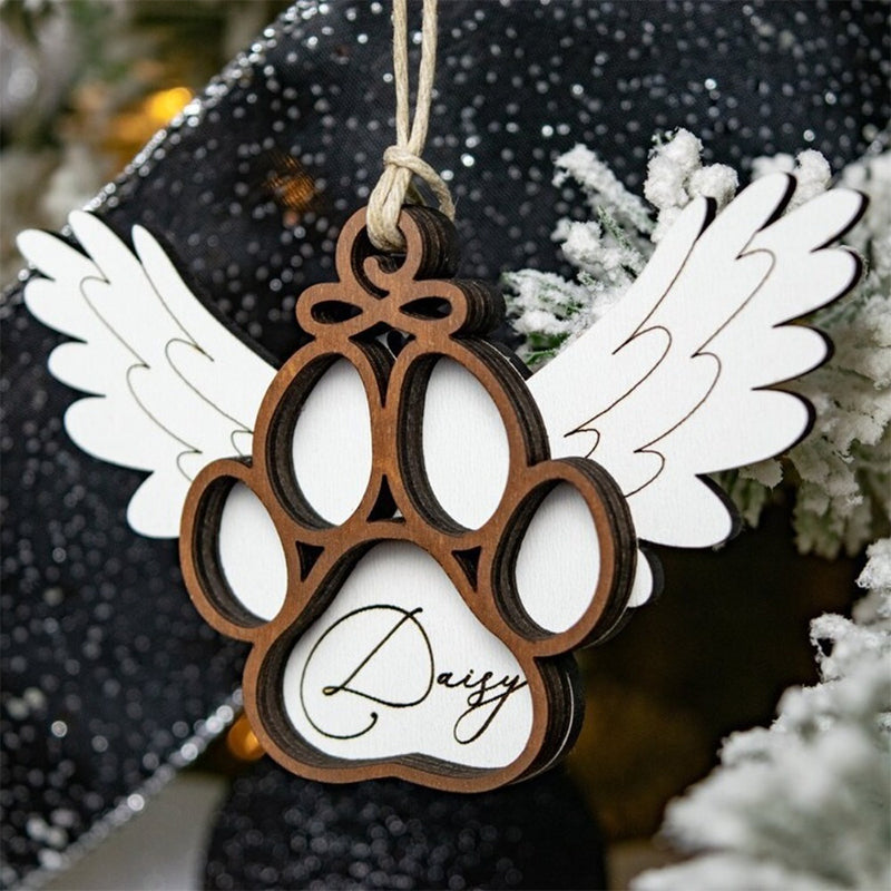 Dog (or cat) paw with wings, a personalized ornament that makes a memorable Christmas for you or as a gift.