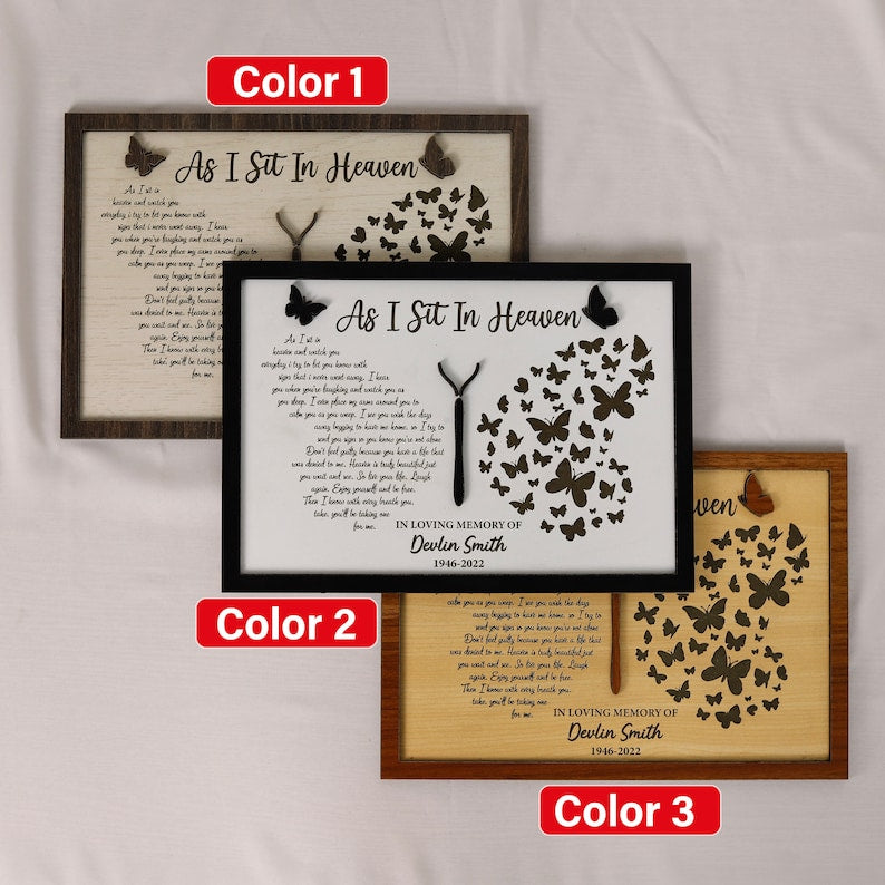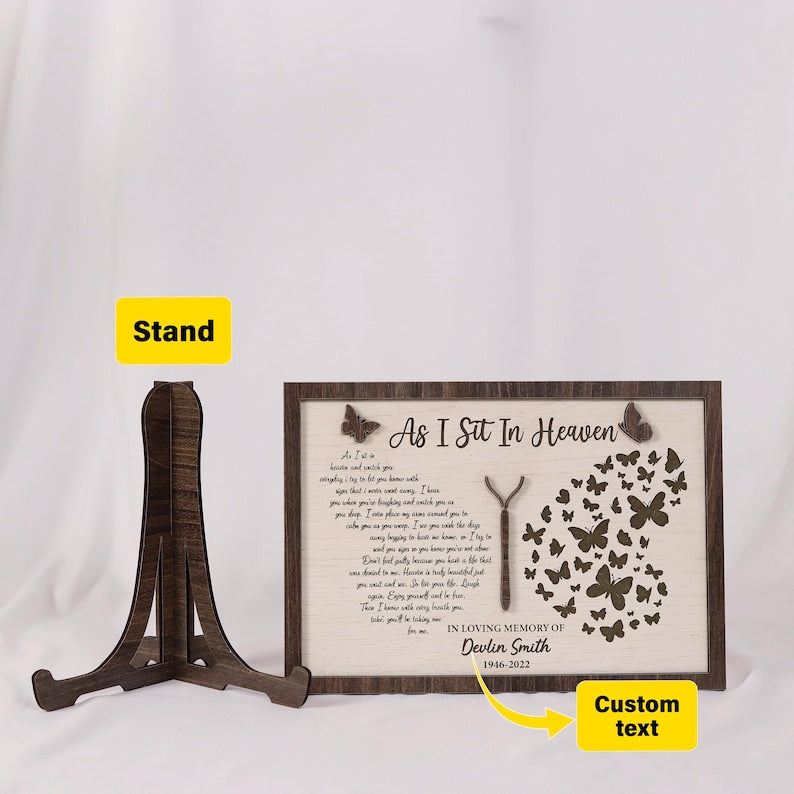 As I Sit in Heaven Wooden Memorial Wood Plaque, Mom Butterfly Memorial Gift