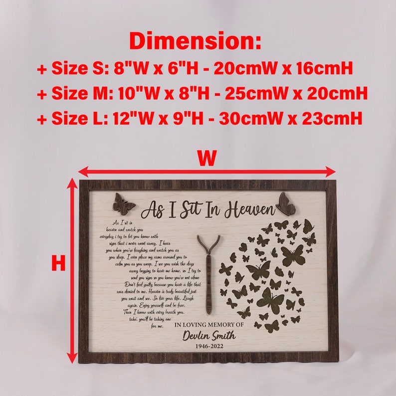 As I Sit in Heaven Wooden Memorial Wood Plaque, Mom Butterfly Memorial Gift, Custom Bereavement Gift, Heavenly Mothers Day, Remembrance Gift