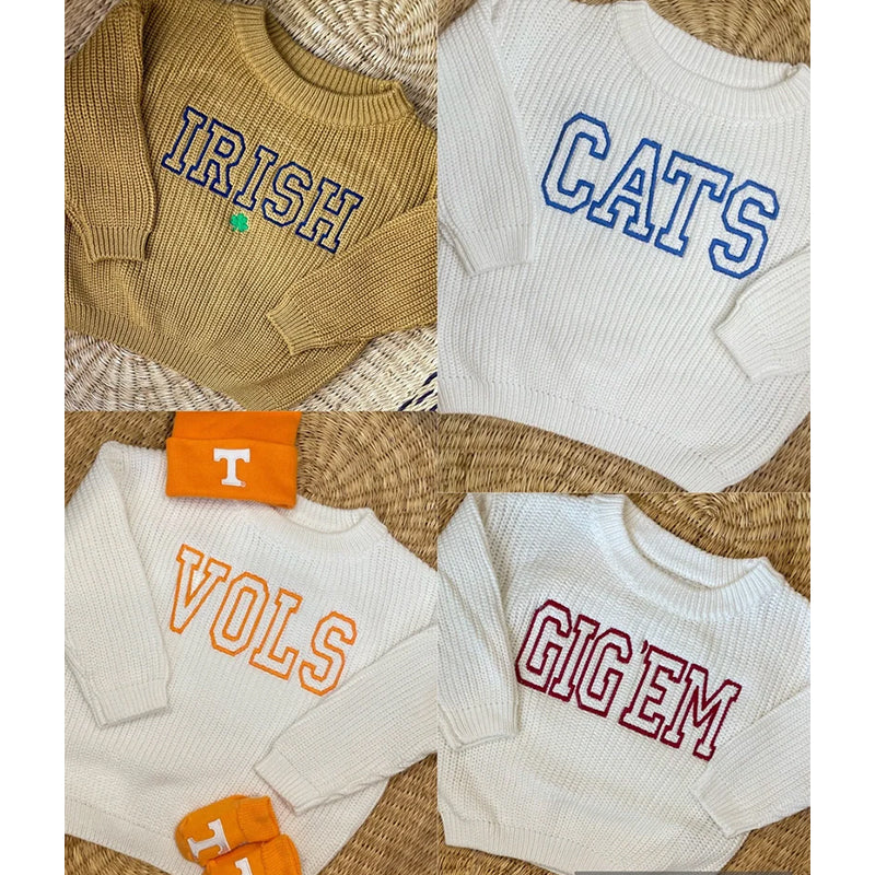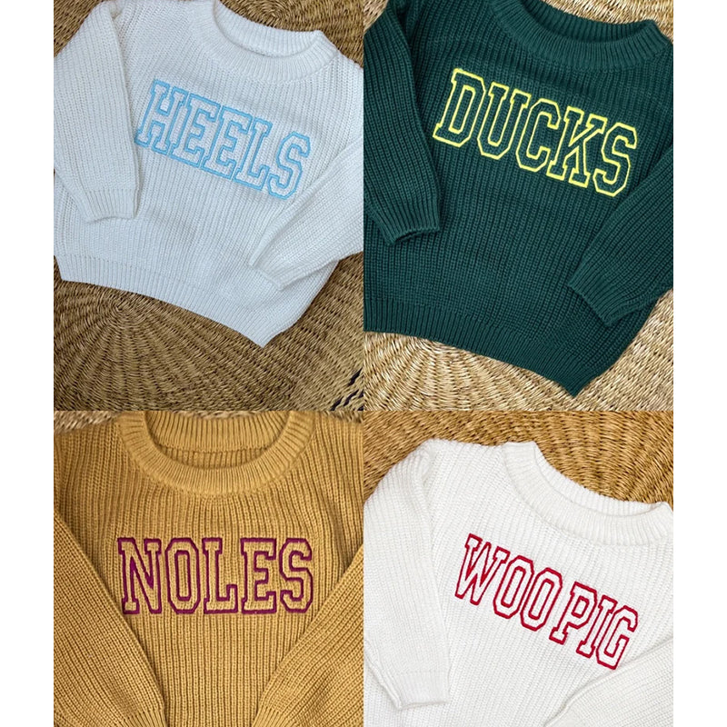 The perfect gift for any expecting sports fans. These are fully custom and can be made for any sport/team. Any word or team name can be used, shorter words tend to look best as I can make the letters larger, so under 8 characters is preferable. They also run a bit big/fit oversized so please order accordingly. These make a great gameday outfit or layering piece for cooler games and are adorable for pictures.