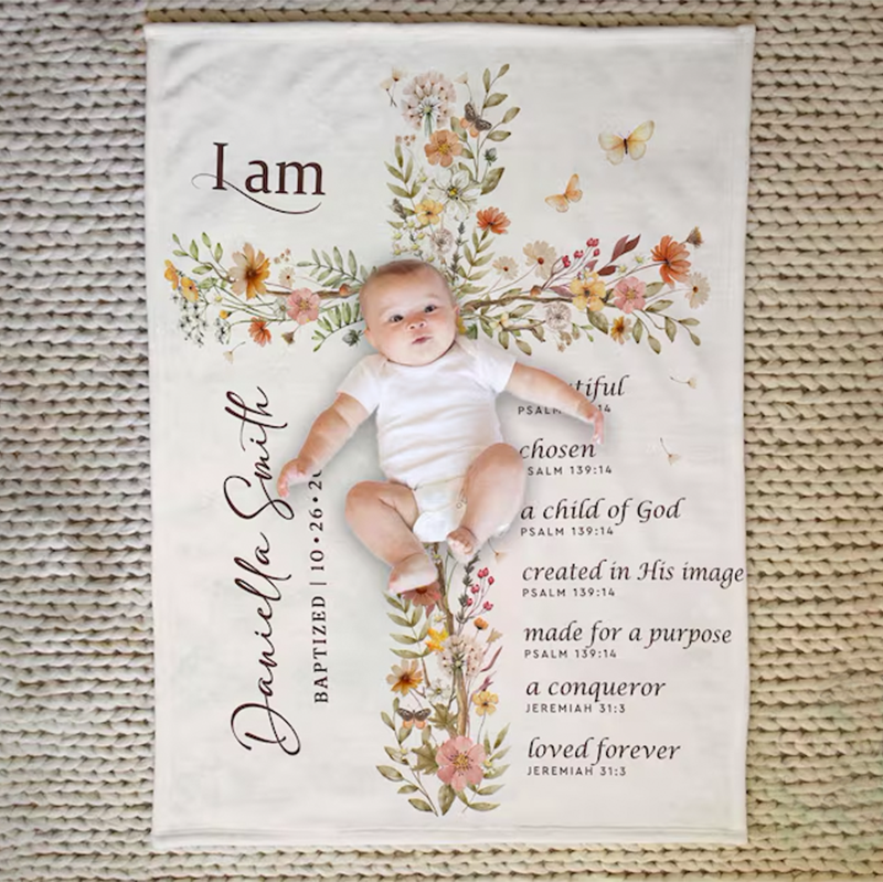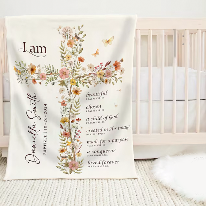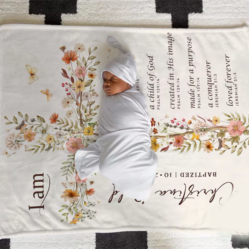 Baptism Gift Girl, Baptism Blanket, Personalized Blanket For Baby