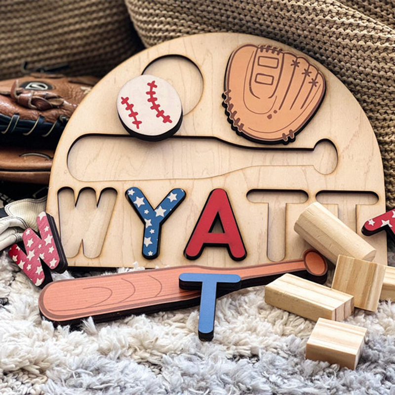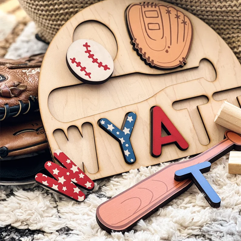 Make learning fun and exciting with one of our themed name puzzles. These are laser cut and handcrafted with quality Baltic birch wood. The baseball puzzle is uv printed for lasting durability. Perfect gift idea that kids are sure to love.