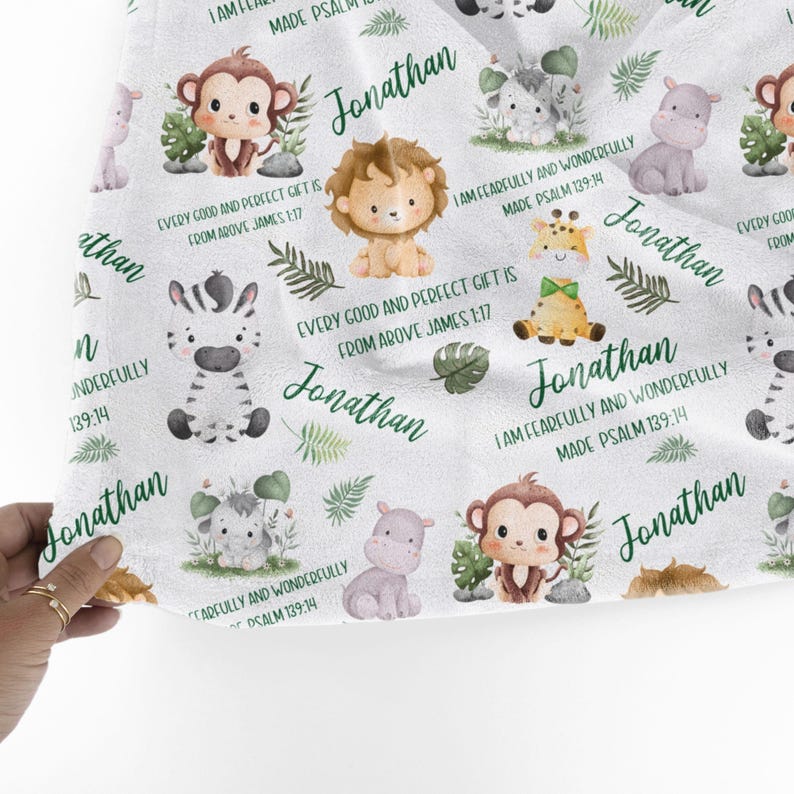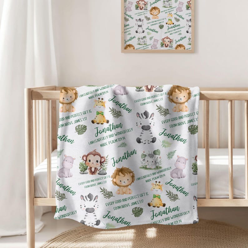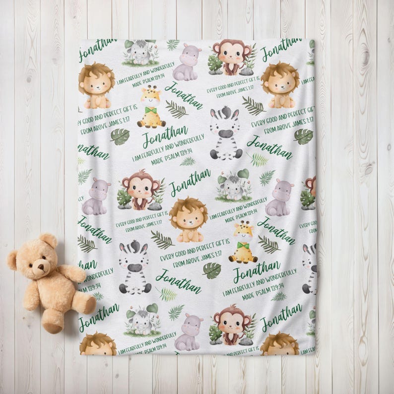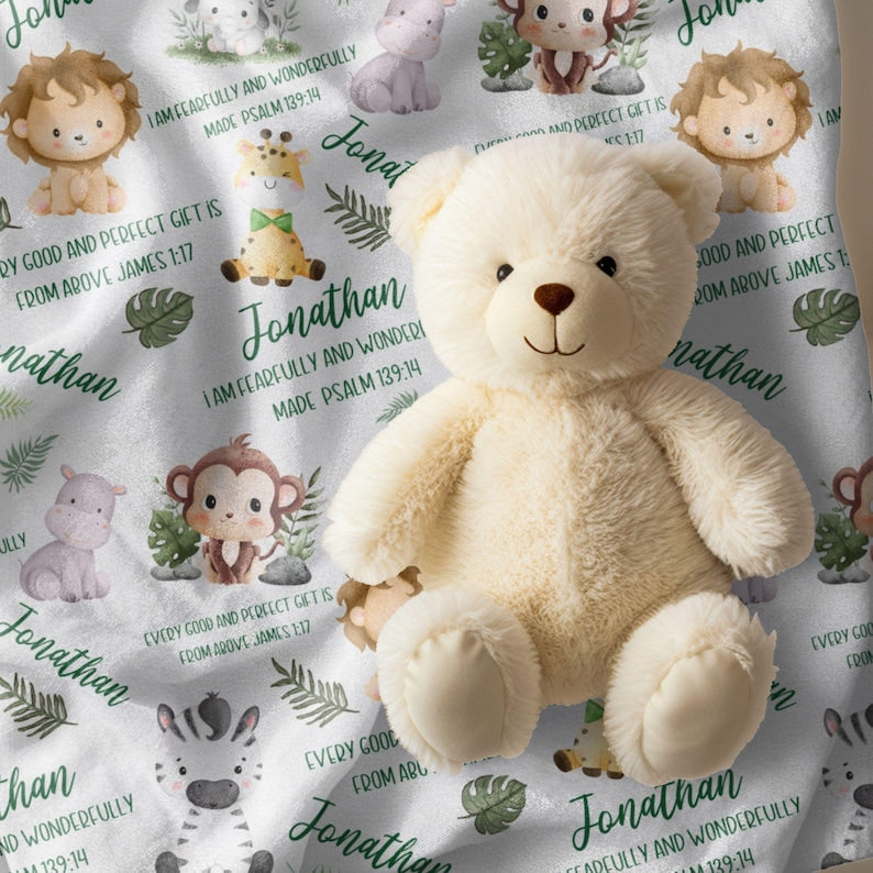 Bible Verse Baby Blanket, Personalized Safari Baby blanket with name