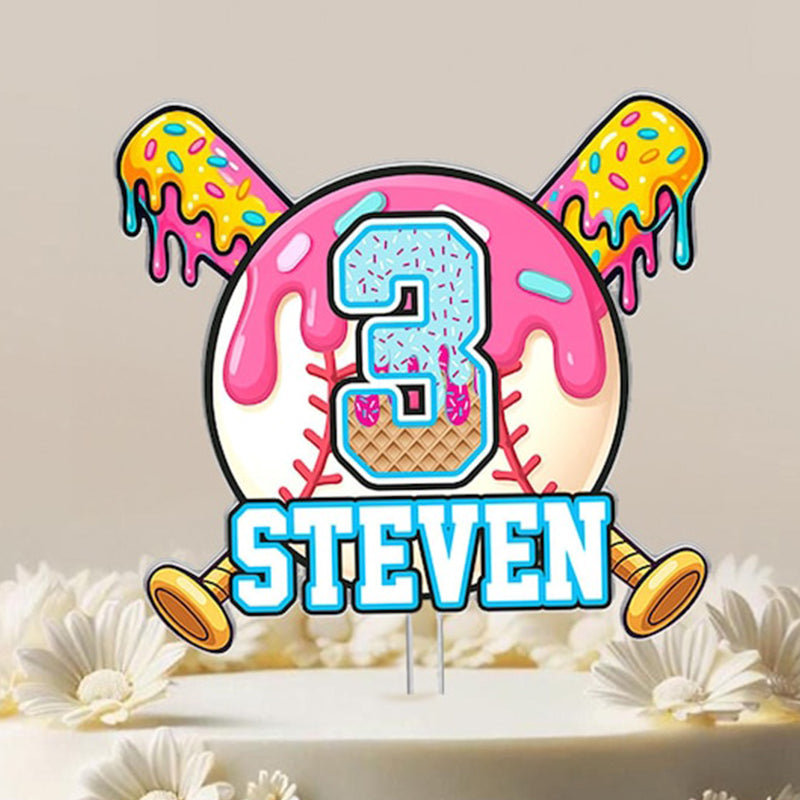Boy Baseball Drip Cake Topper, Custom Baseball Birthday Cake Topper