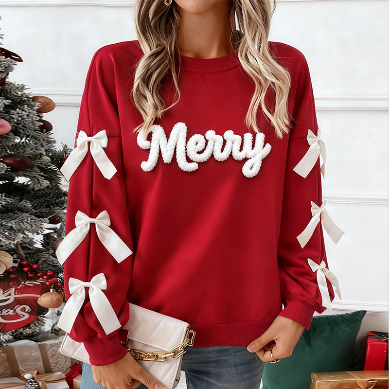 Christmas Chenille Yarn Embroidered Sweatshirt, Chenille YARN Christmas Sweatshirt, Women's Holiday Sweatshirt Christmas. Xmas Gift For Her
