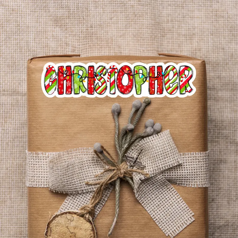 Make your holidays brighter with a personalized Christmas name sticker. Perfect for labeling gifts, cards, and stockings, and more!