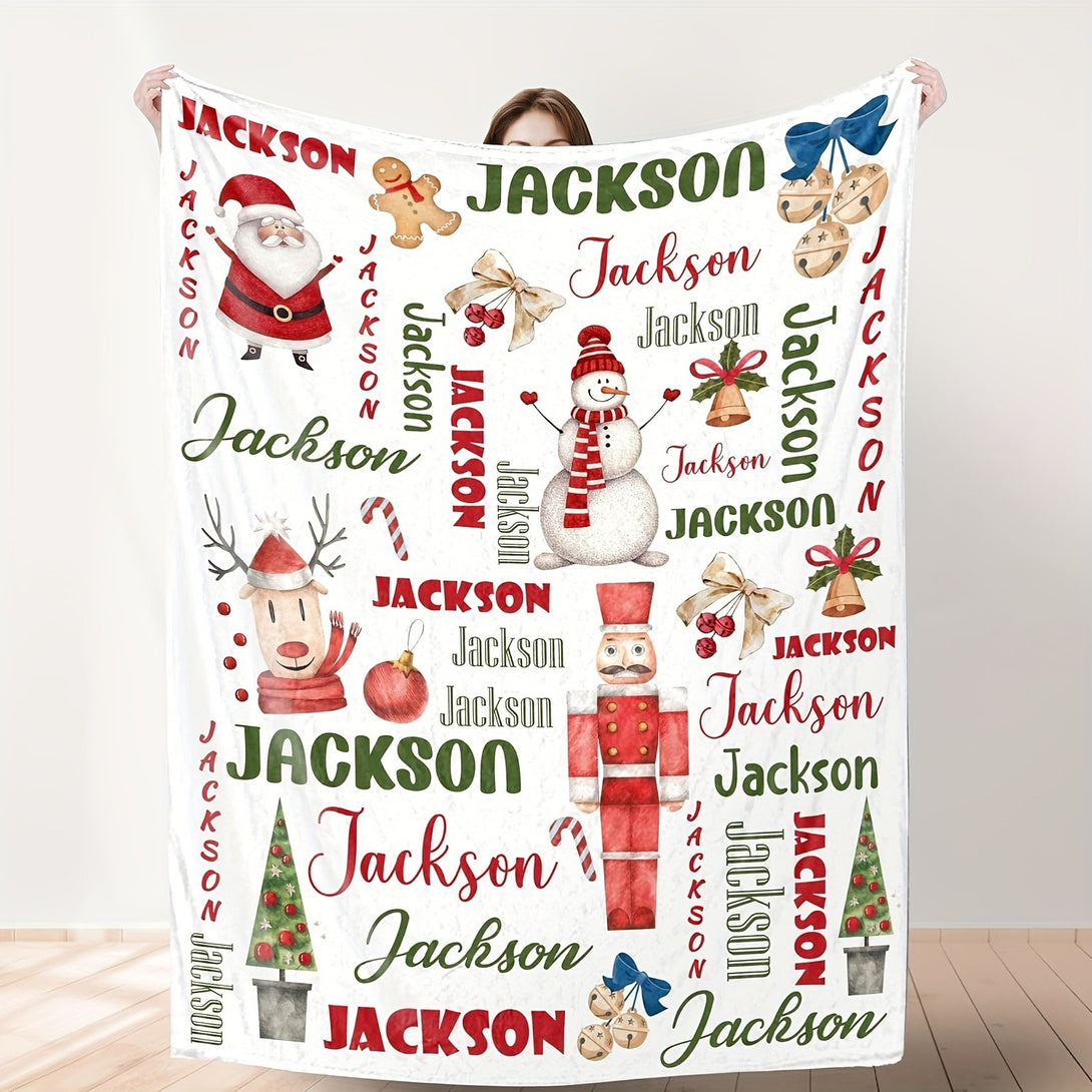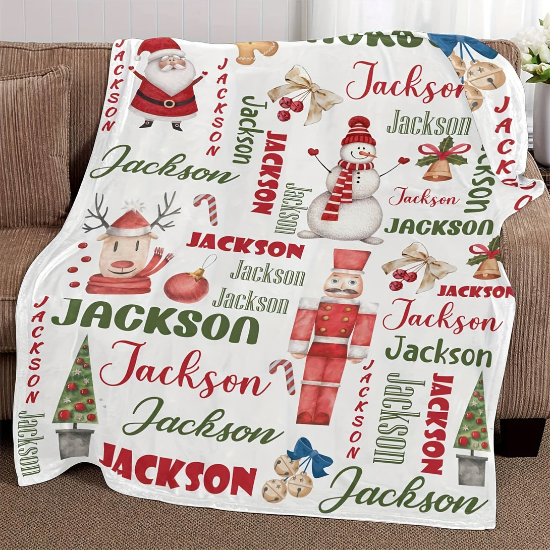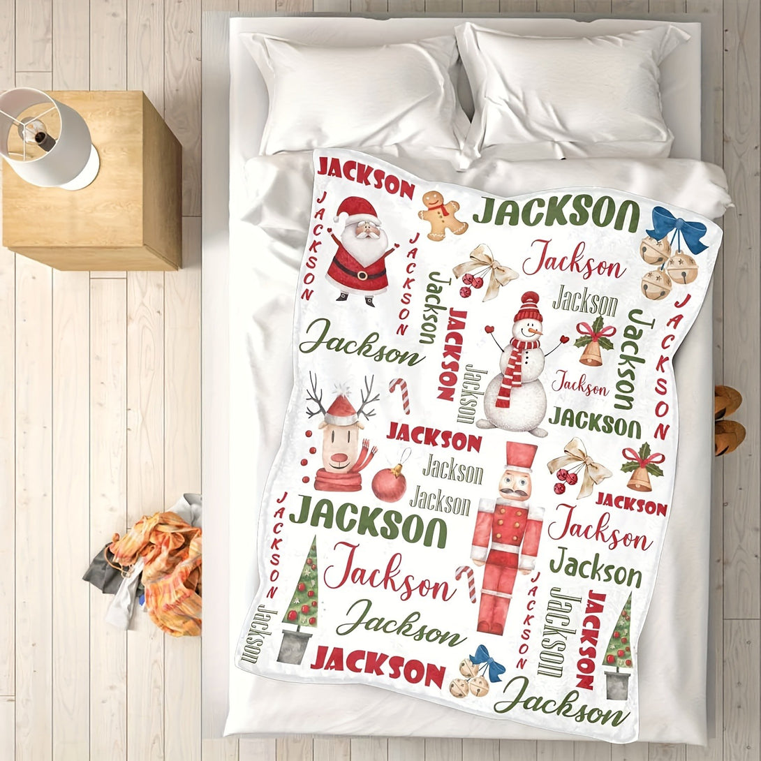 Christmas Santa Claus Pattern Customized Name Blanket,