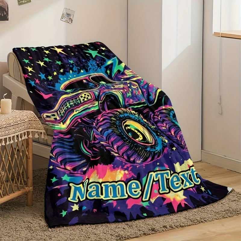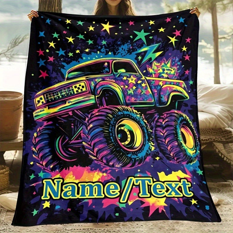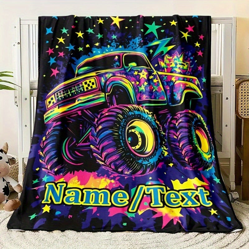 Custom 1pc Blanket with Creative Off-Road Truck Design And Personalized Text