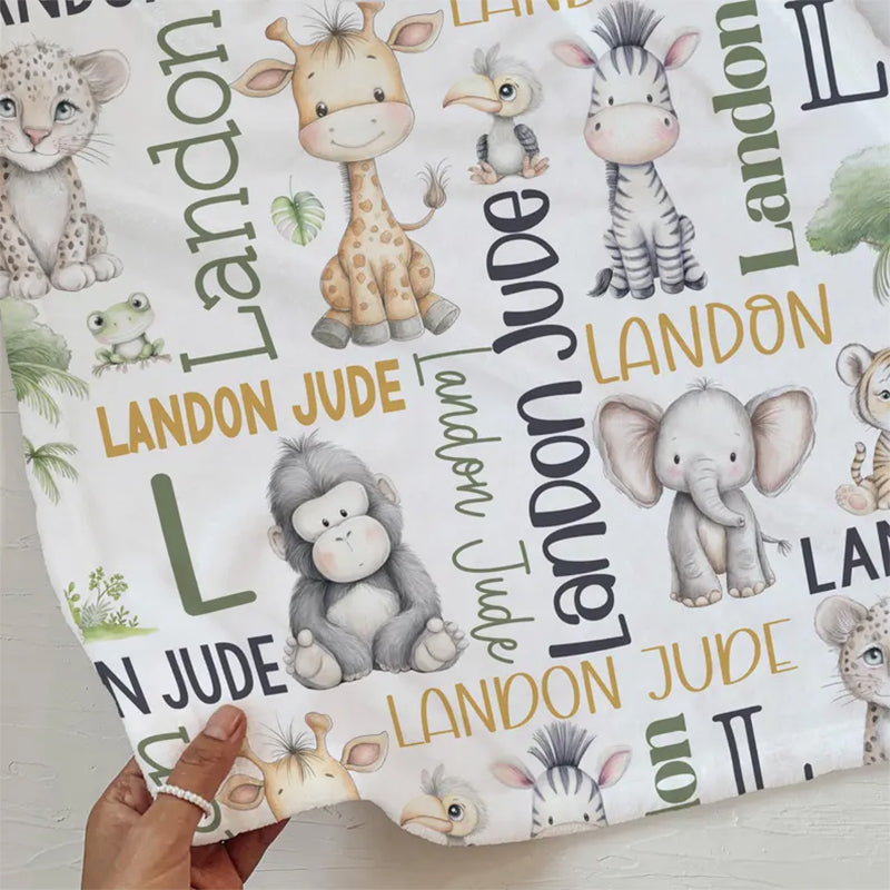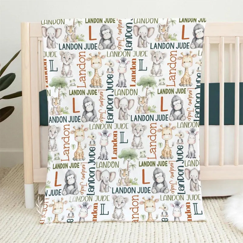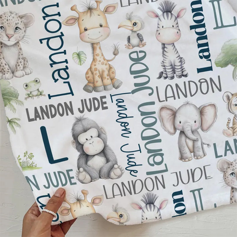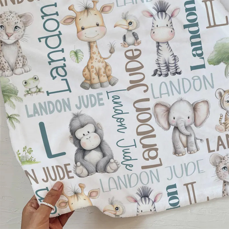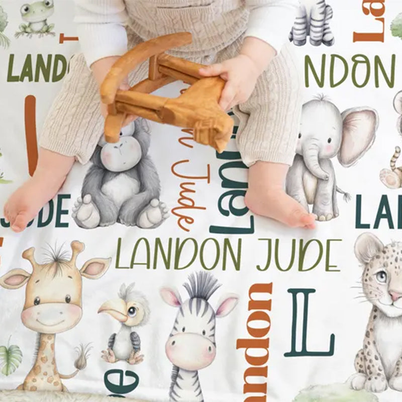 CUSTOM BABY BOY Safari Animals Baby Blanket