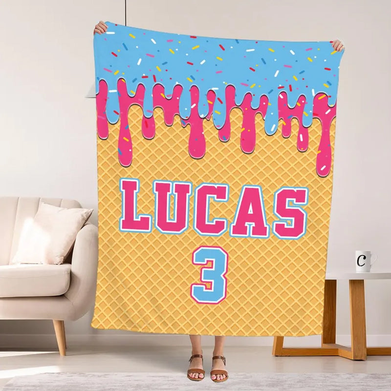Custom Baseball Drip Plush Blanket: Personalized Kid's Birthday Gift