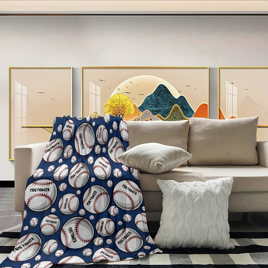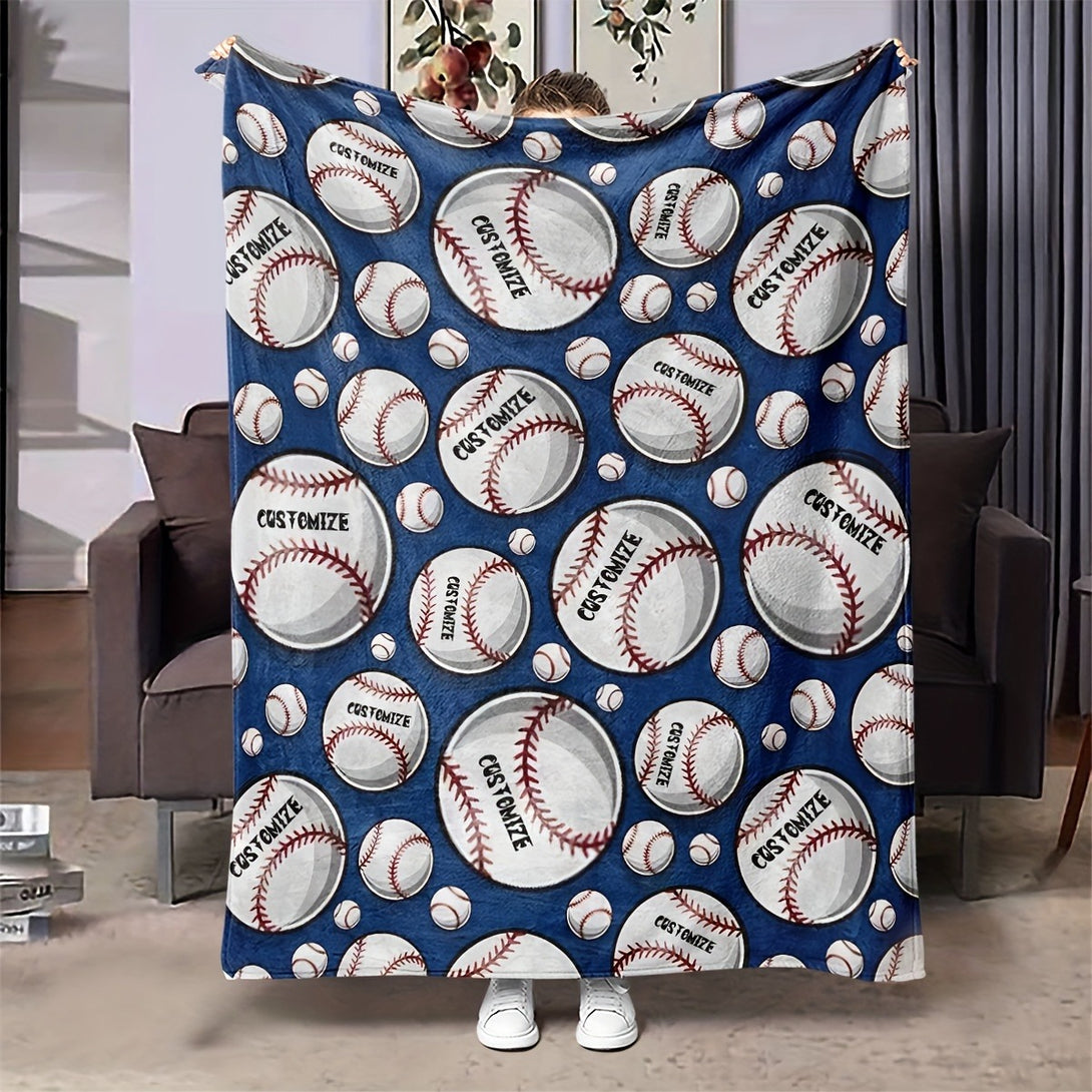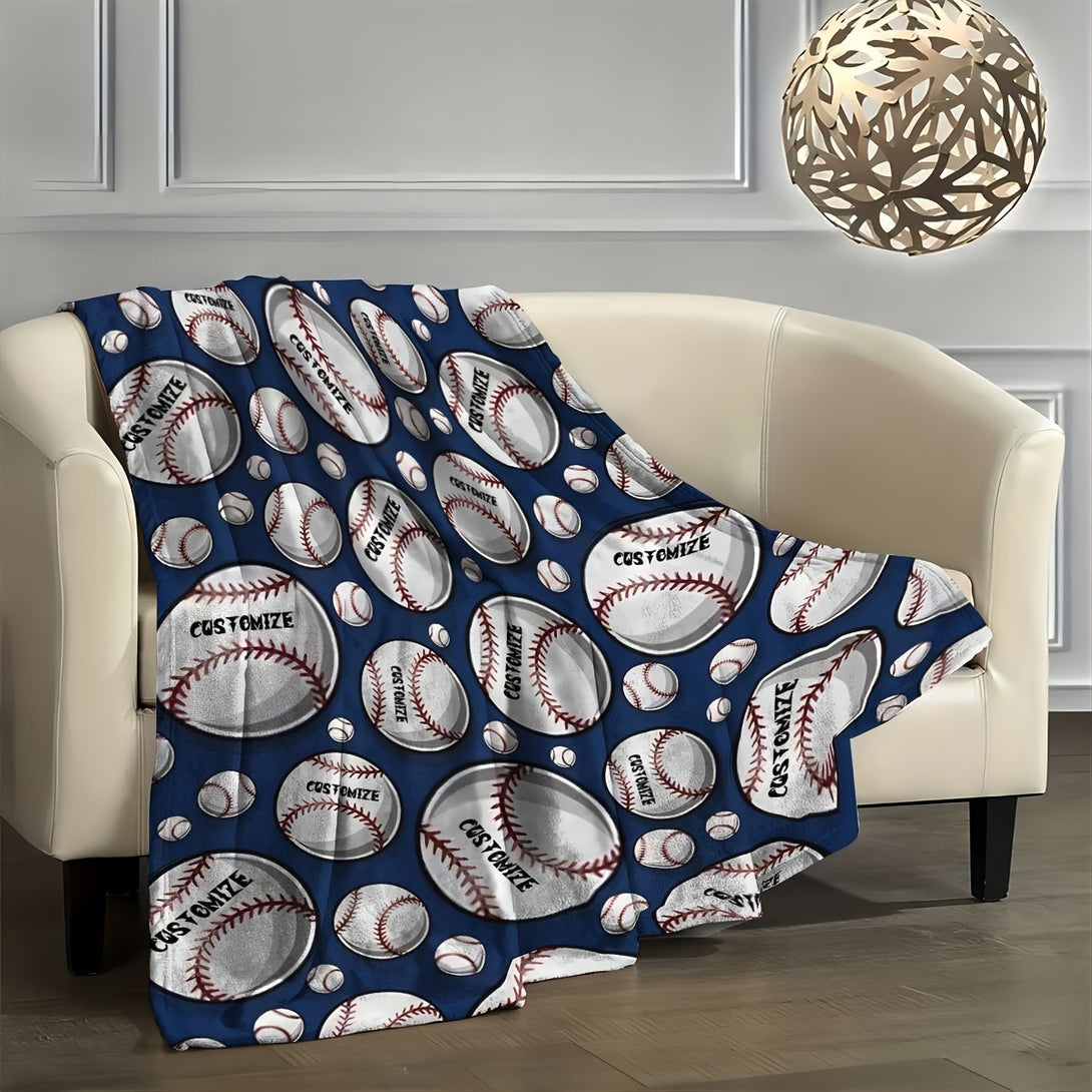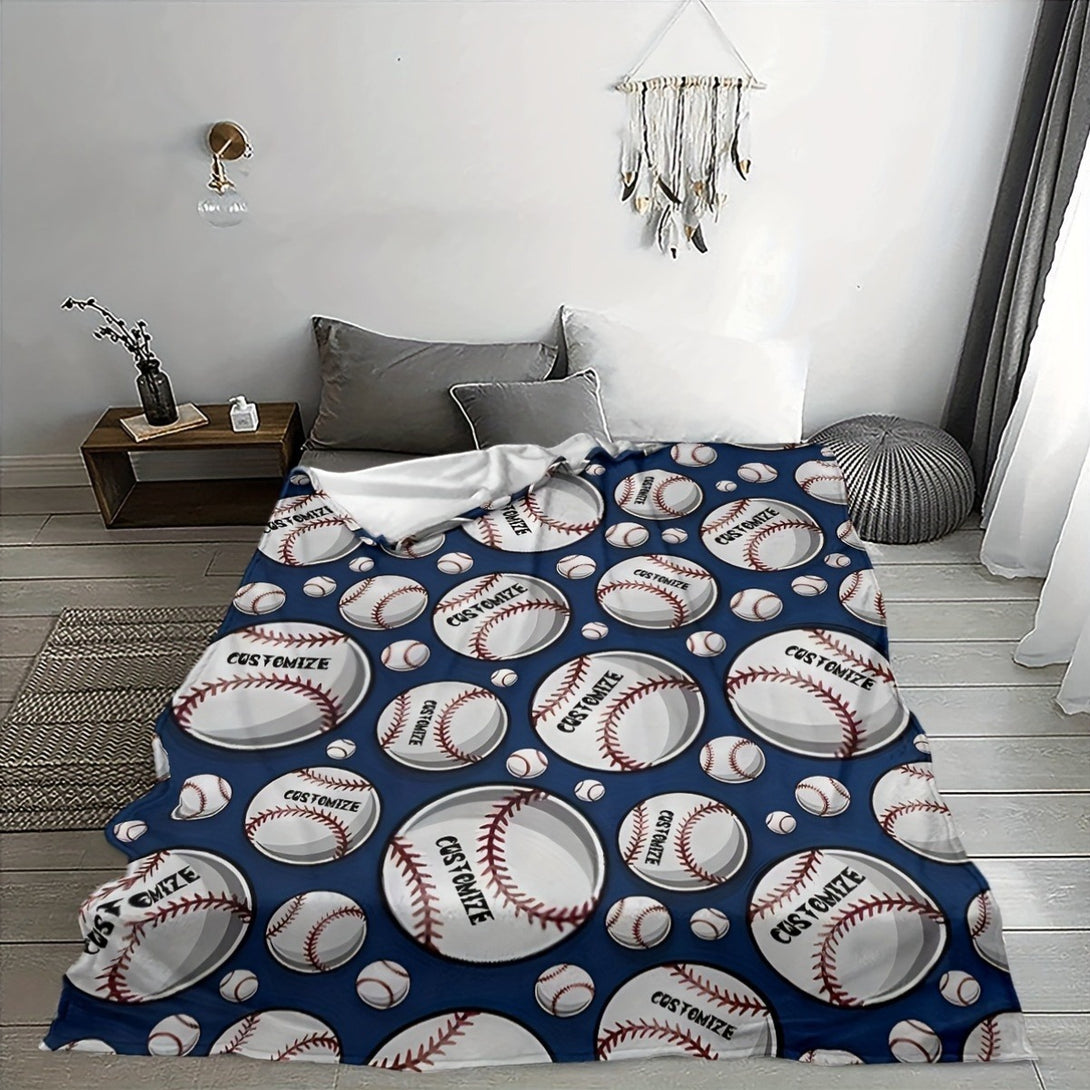 Custom Baseball Text Printed Fleece Blanket - Perfect for All Seasons