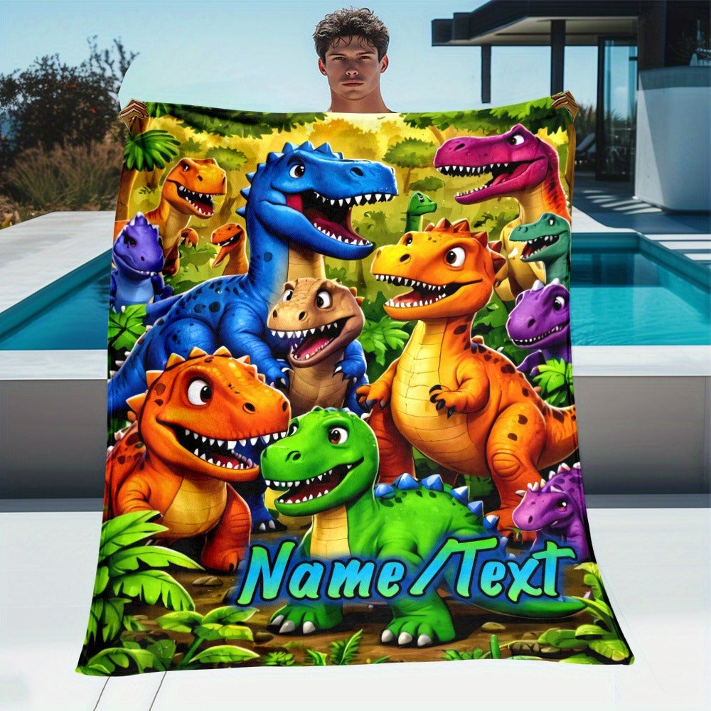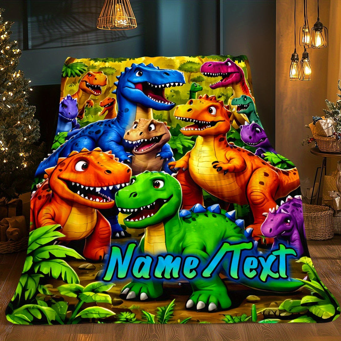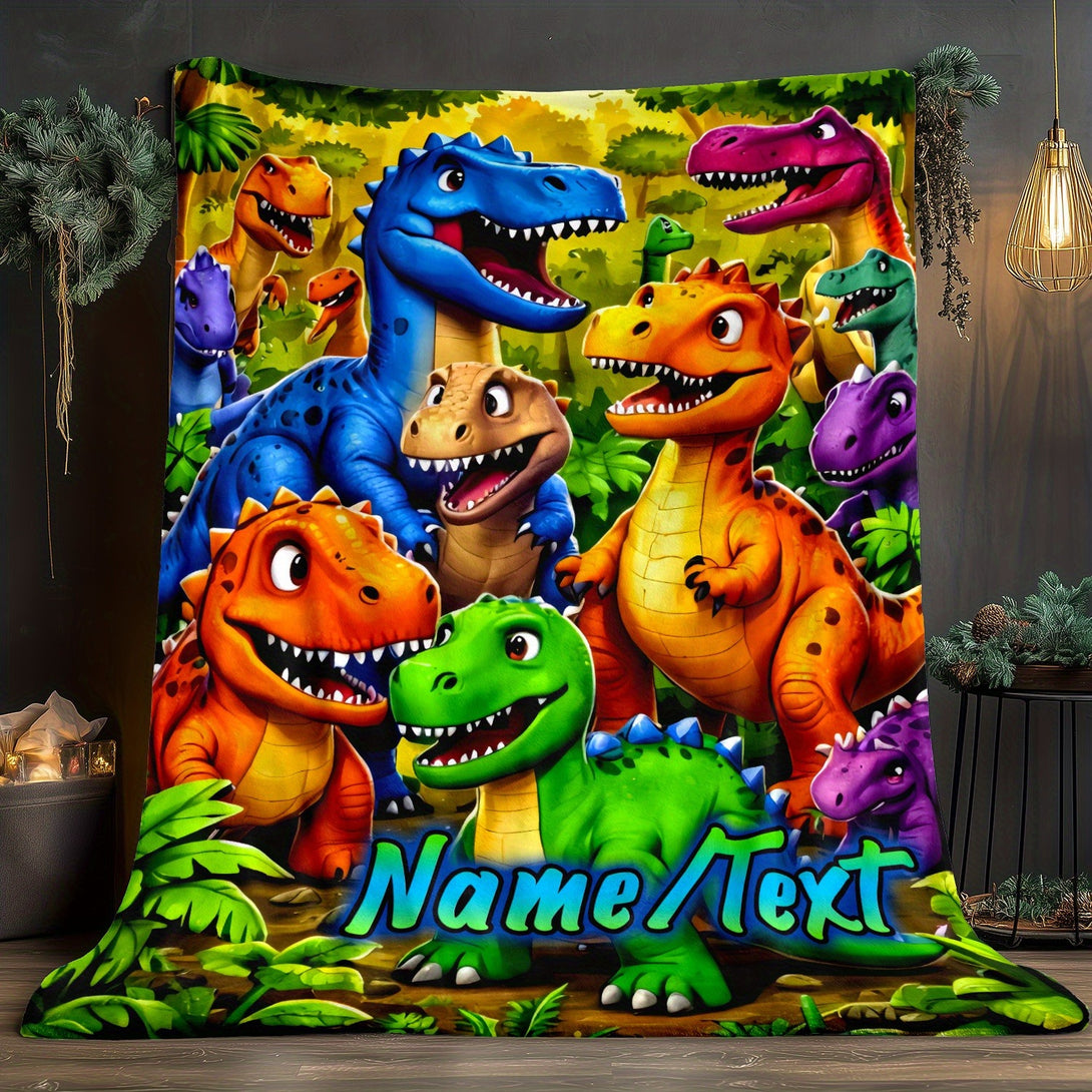 Custom Cartoon Dinosaur Family Blanket | Lightweight Flannel Home Furnishings Bedding Blanket