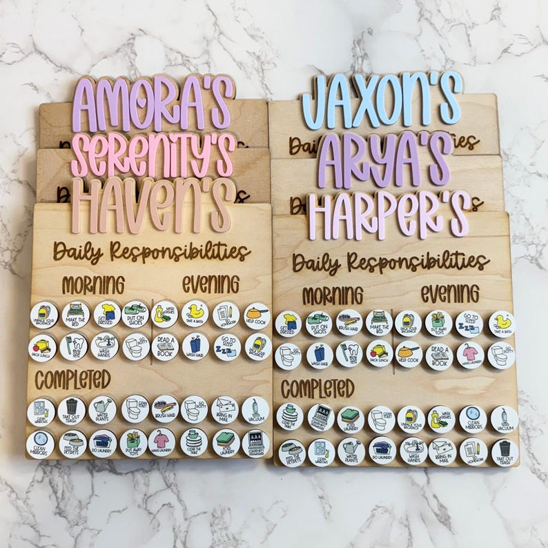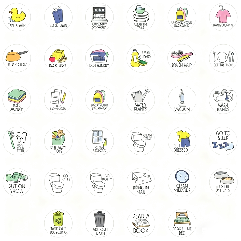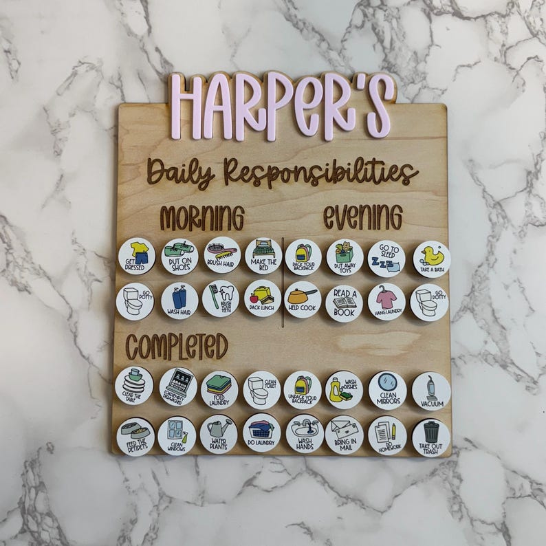 Say goodbye to chaos and hello to clean with this fun and friendly responsibility board! Designed to turn everyday tasks into a team adventure, this chart helps everyone stay on track with their responsibilities—without the nagging. Whether you're tidying up toys, taking out the trash, or conquering Mount Laundry, this chart keeps it all organized and even a little exciting. This responsibilities board not only has chores but also tasks that toddlers do daily to stay organized.