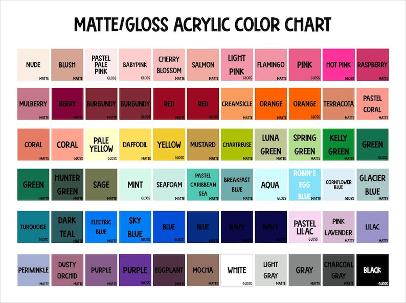 -color chart and real acrylic can be a little different, if you would like to see a sample of a color, please