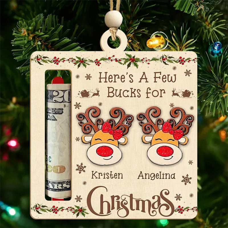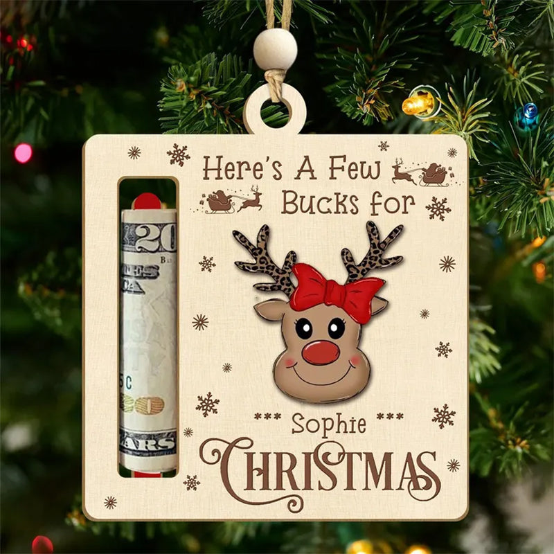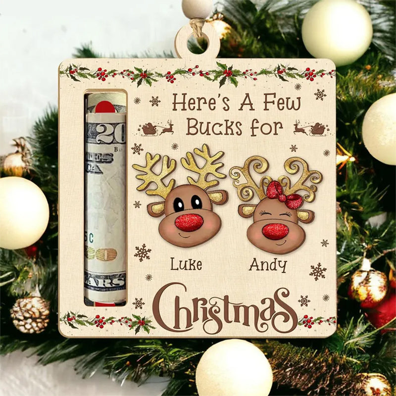 Custom Cute Money Holder Christmas Ornament 2025, Here’s A Few Bucks for Christmas, Reindeer Money Holder, Bucks for Xmas, Gift for kids