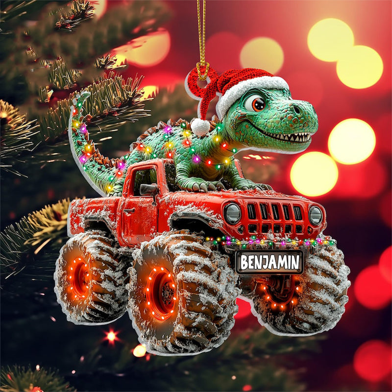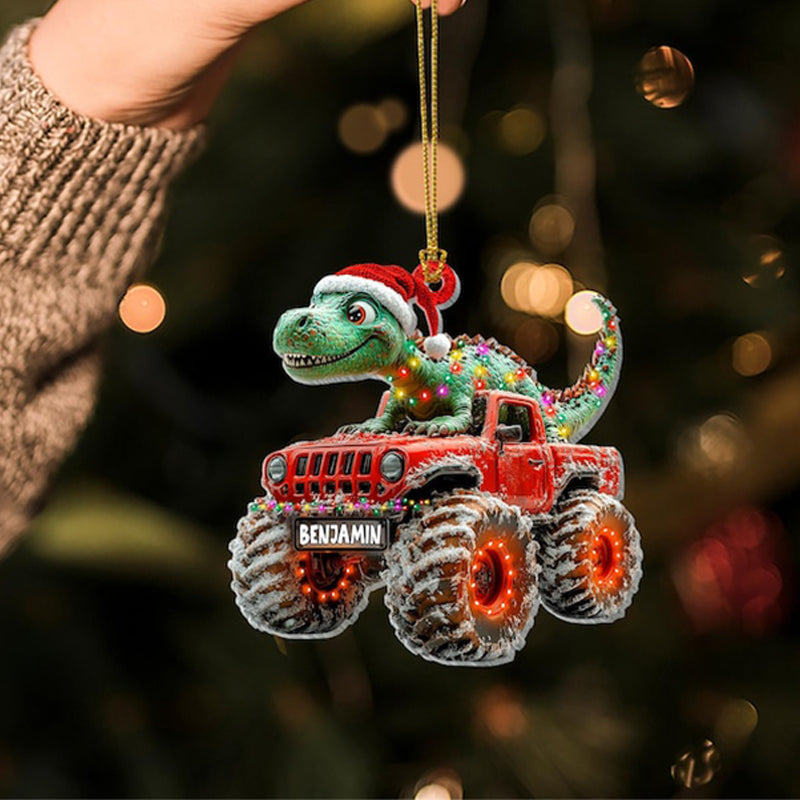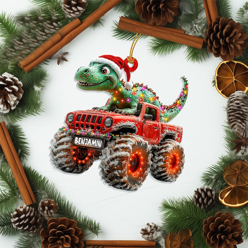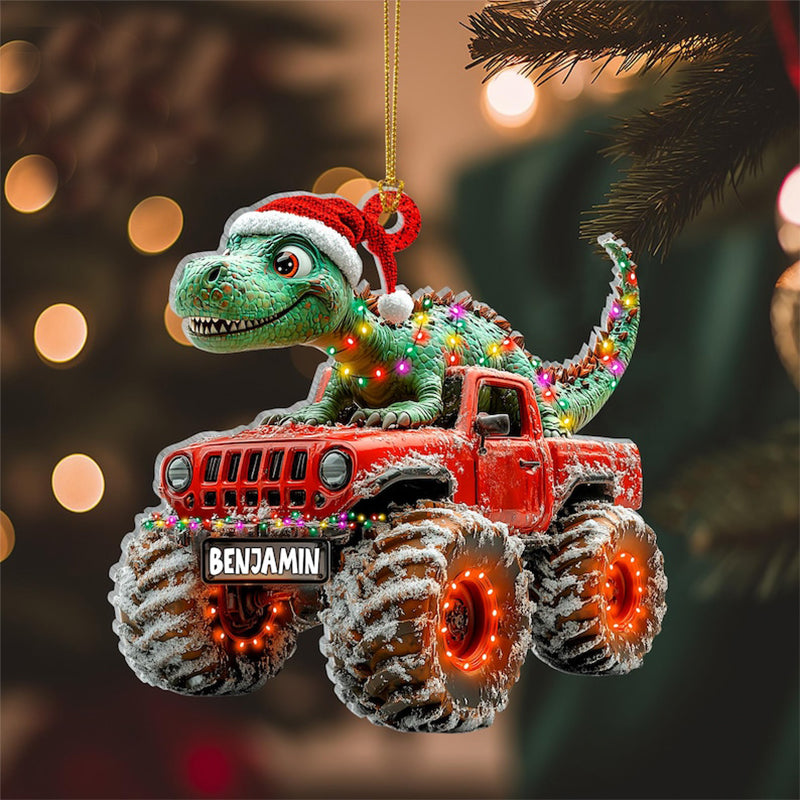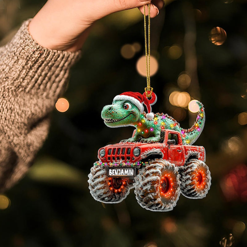 Custom Dinosaur Christmas Ornament, Monster Truck Ornament,Boys Dino Christmas Ornament,Baby Boy Christmas Present,Christmas Gift For Child