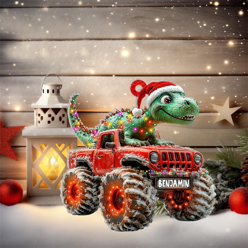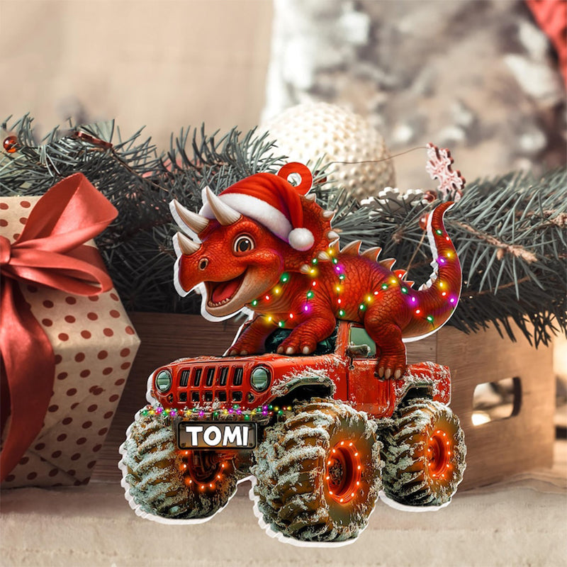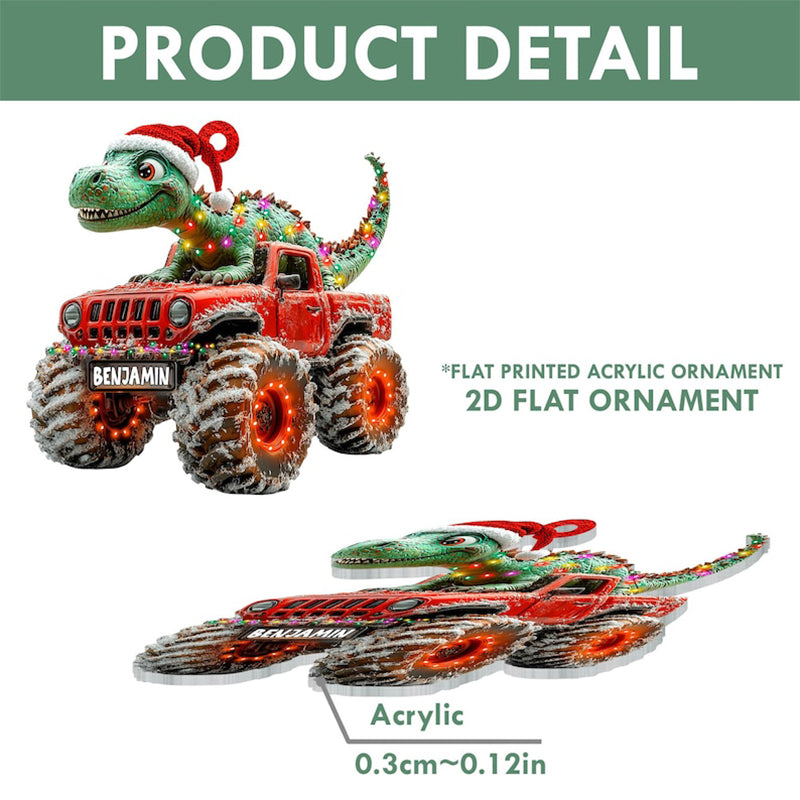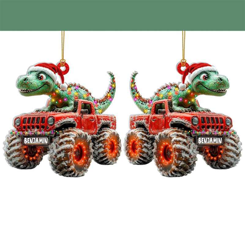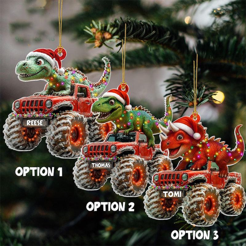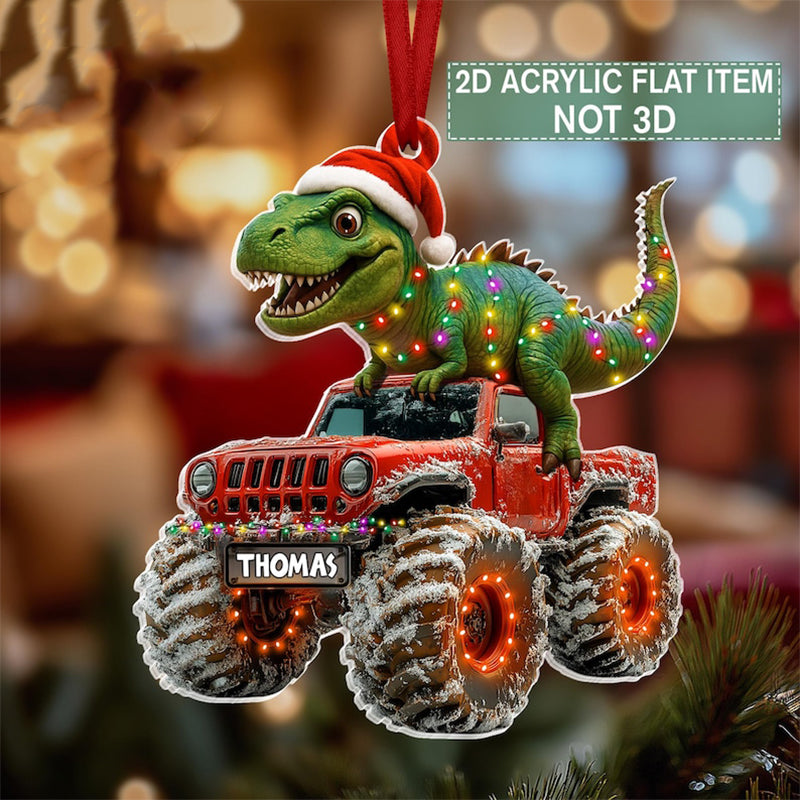 Custom Dinosaur Christmas Ornament, Monster Truck Ornament,Boys Dino Christmas Ornament,Baby Boy Christmas Present,Christmas Gift For Child