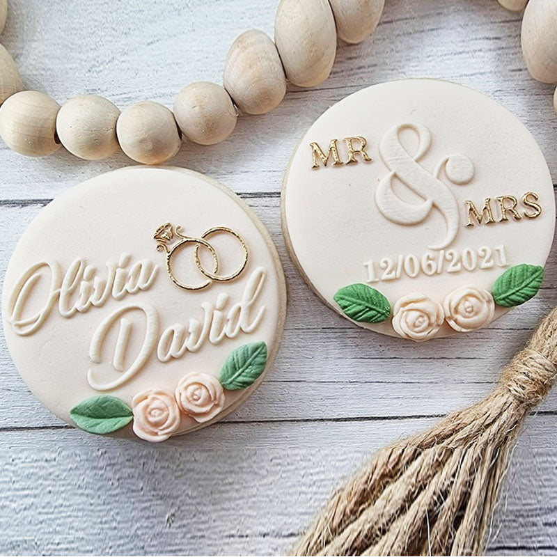 Custom Wedding Names cookie stamp from made to order.