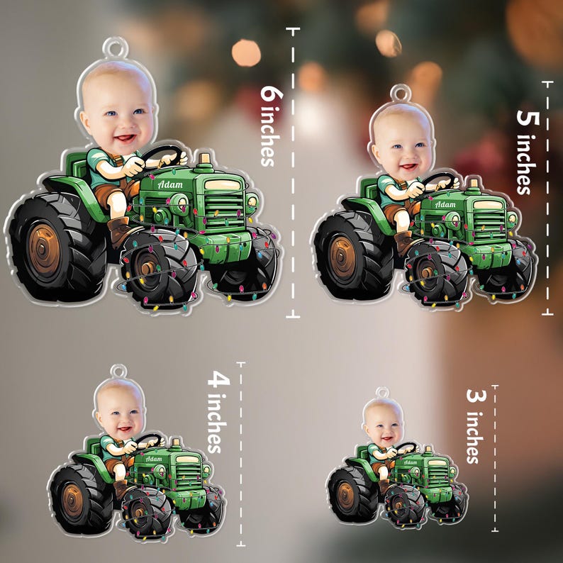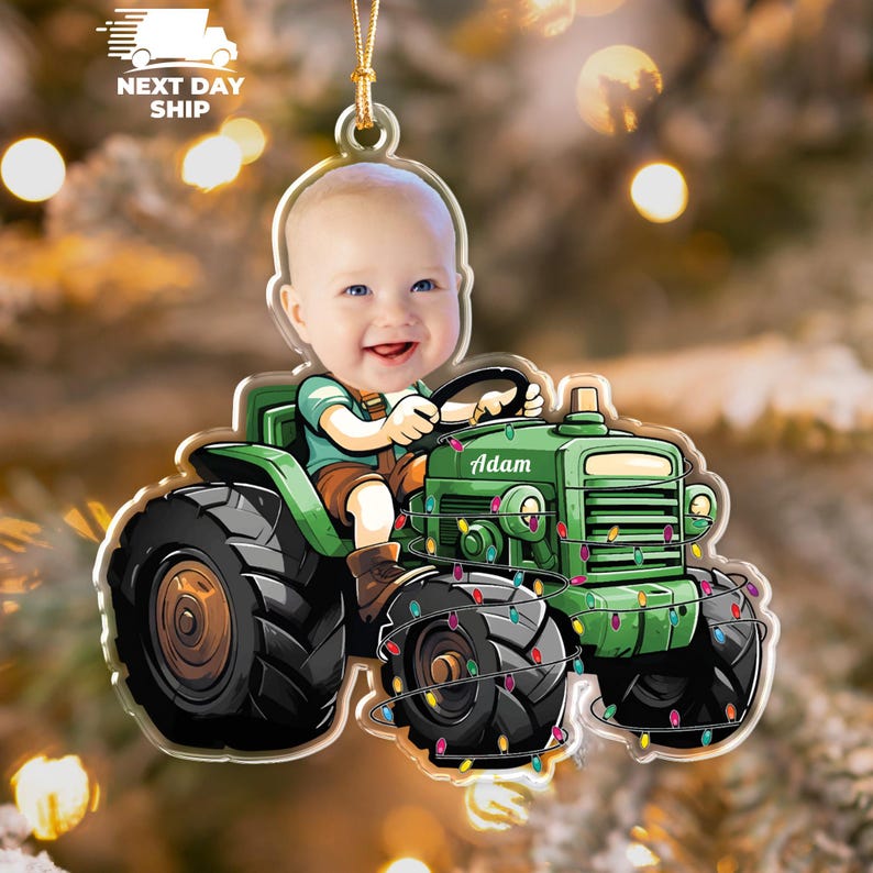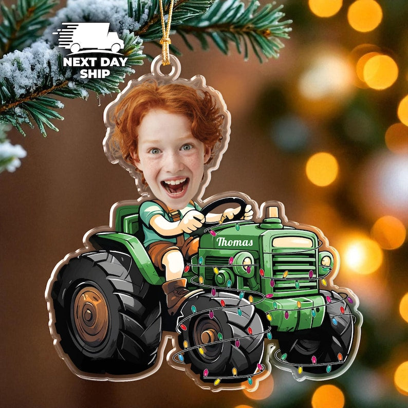 Celebrate the holidays with country charm and a touch of fun with our Personalized Tractor Christmas Ornament! Featuring your child’s photo riding a festive green tractor wrapped in Christmas lights, this unique keepsake makes the perfect decoration for farm families, tractor lovers, and little adventurers.