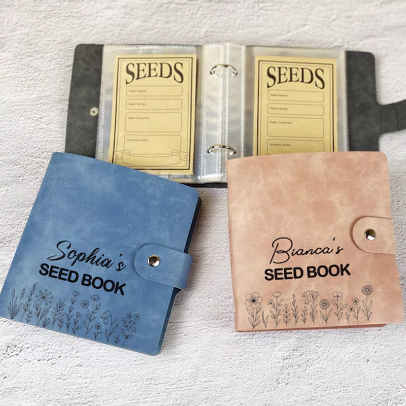 This personalized Garden Seed‑Book is designed to hold up to 50 self‑sealing envelopes, perfect for organizing your seeds or gifting to a gardening enthusiast.