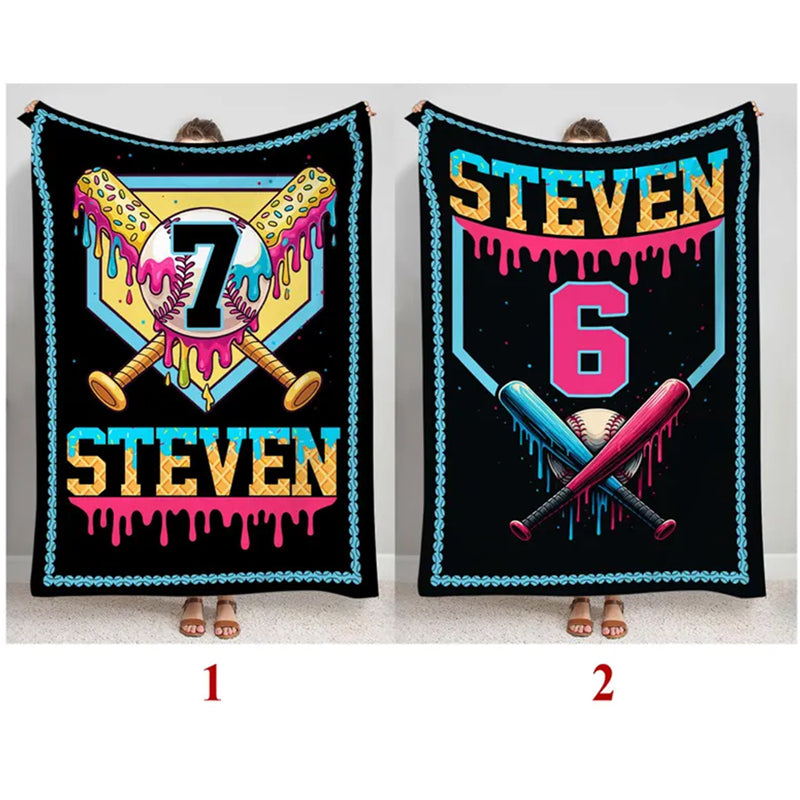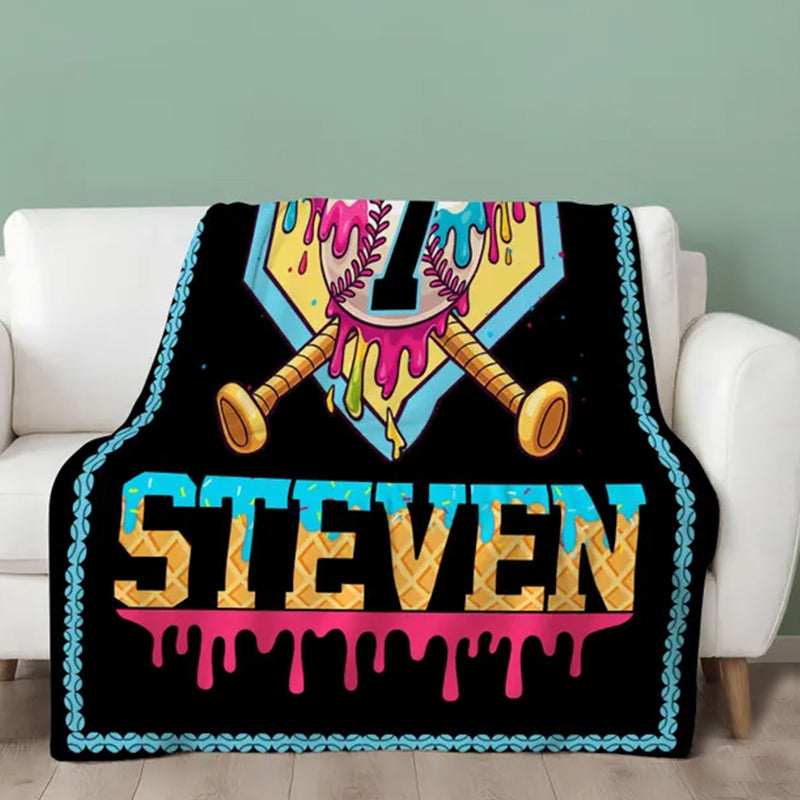 Custom Ice Cream Drip Baseball Blanket