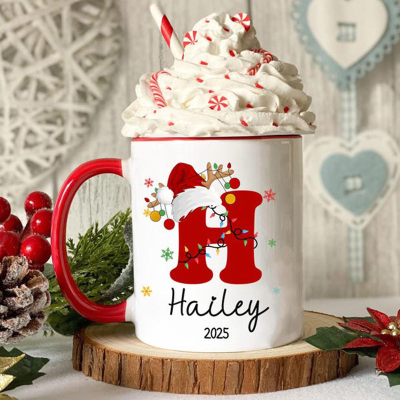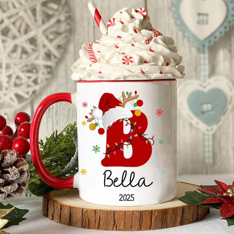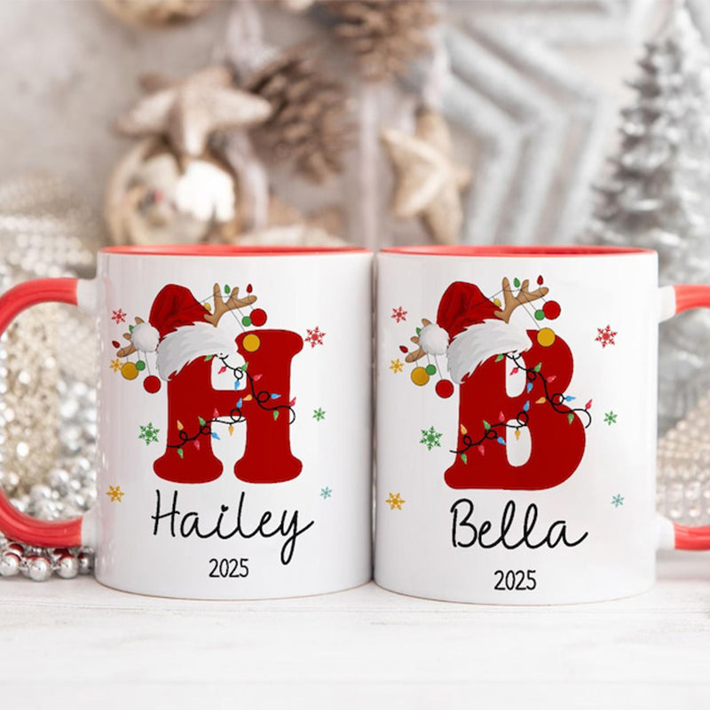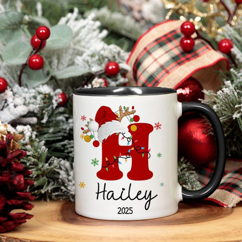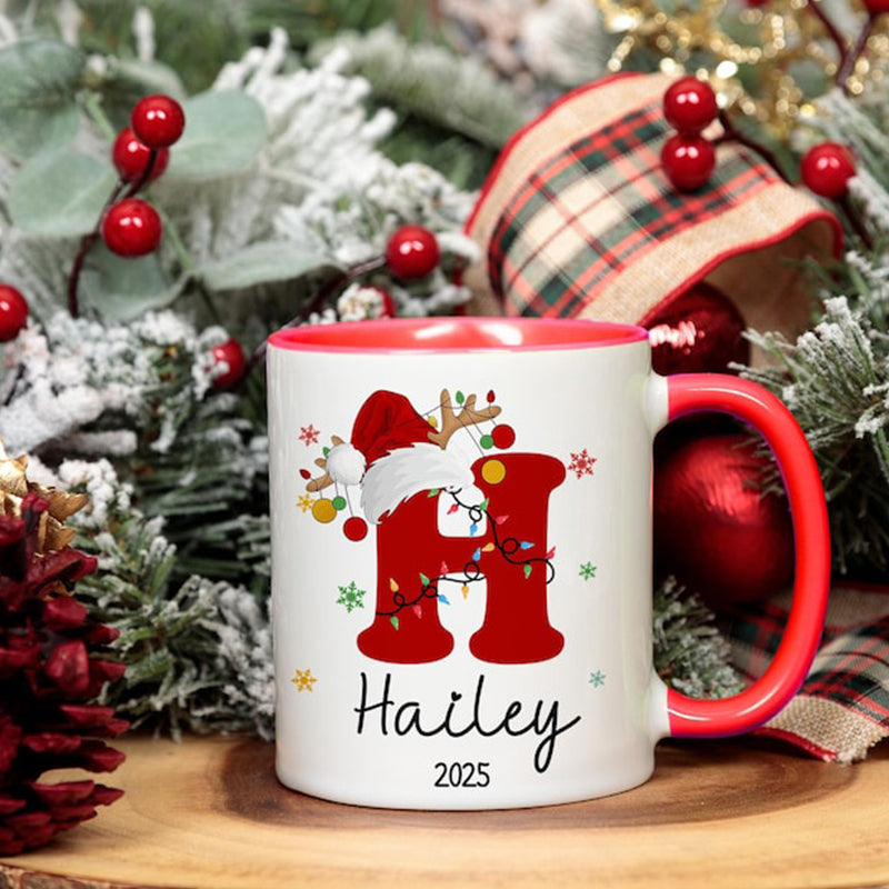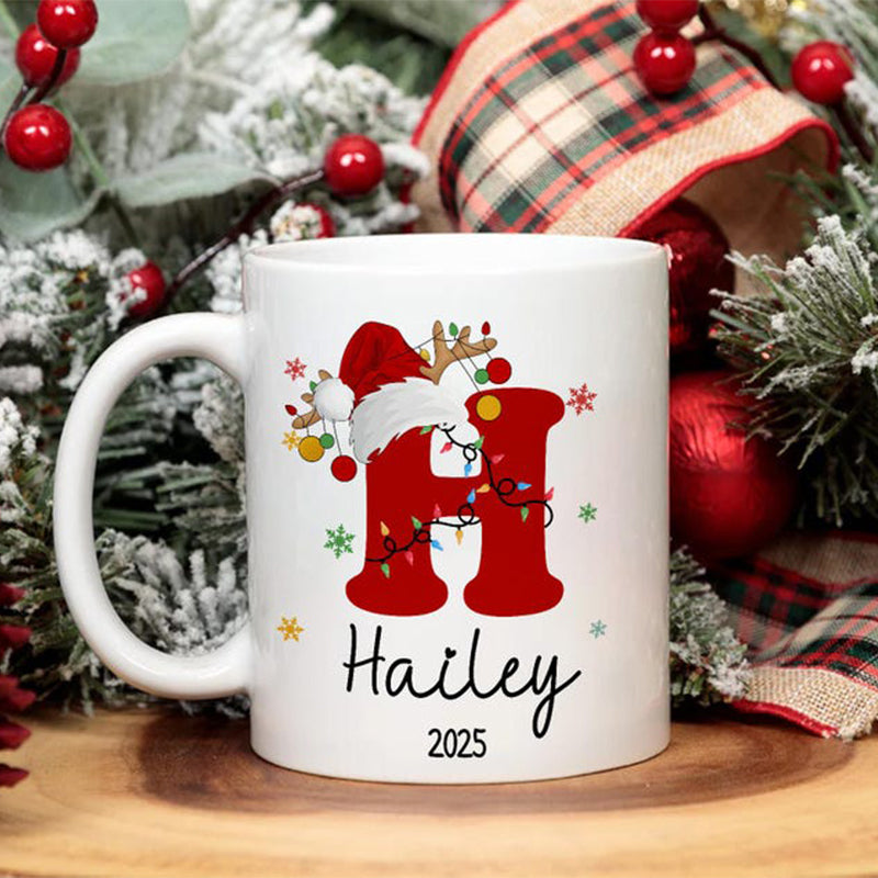 Custom Initial Name Mug, Personalized Christmas Mug, Xmas Gifts Idea