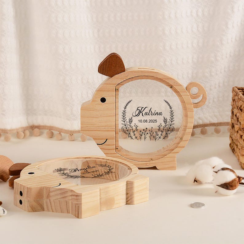 Our personalized wooden Money box adds color to childhood, is a lovely decoration for children's rooms, and is a precious souvenir that can be passed down from generation to generation.