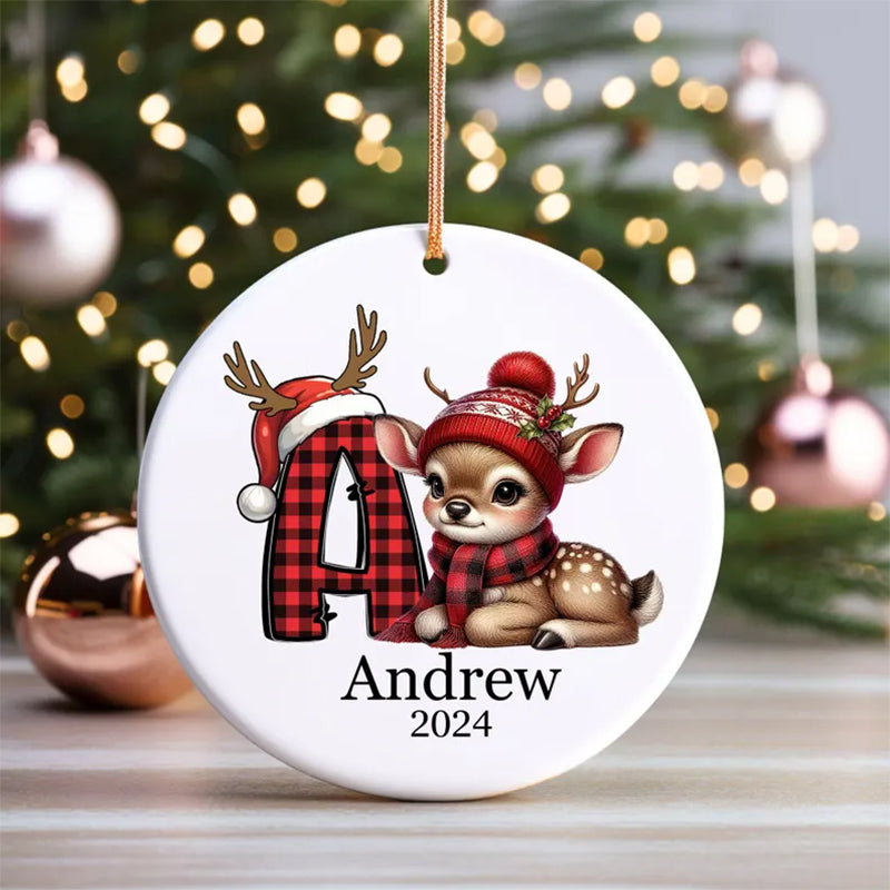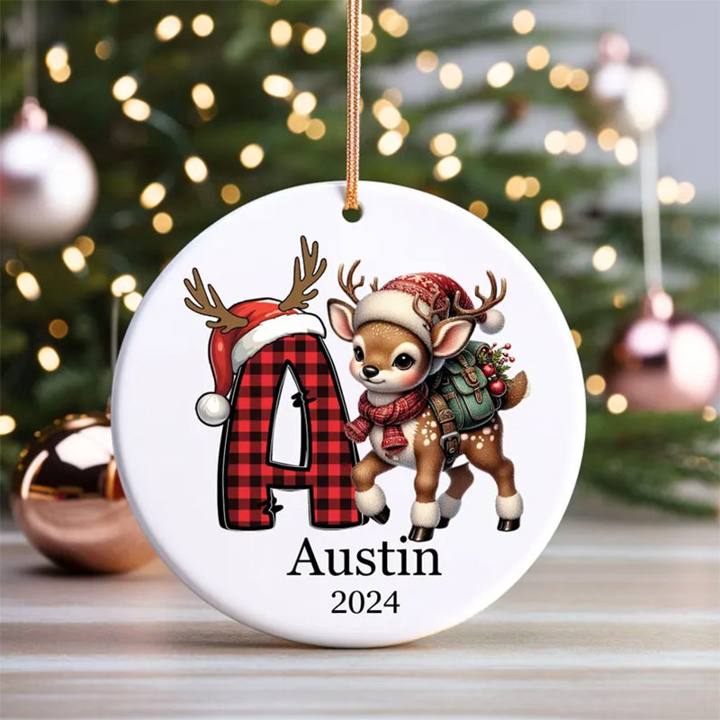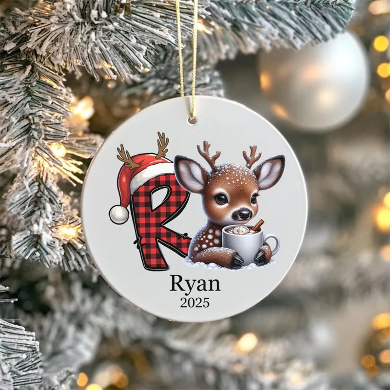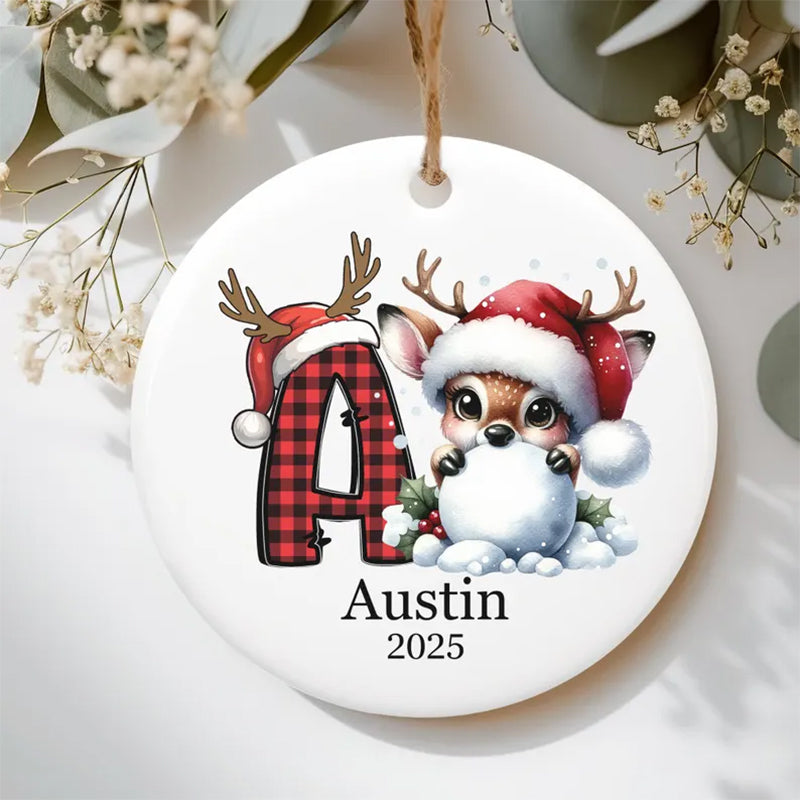 Personalized Christmas Letter Ornament 2025 Custom Family Initial Reindeer Decoration