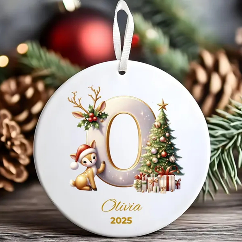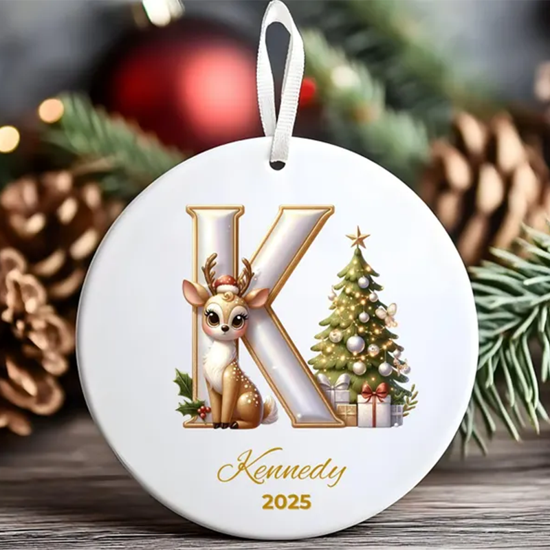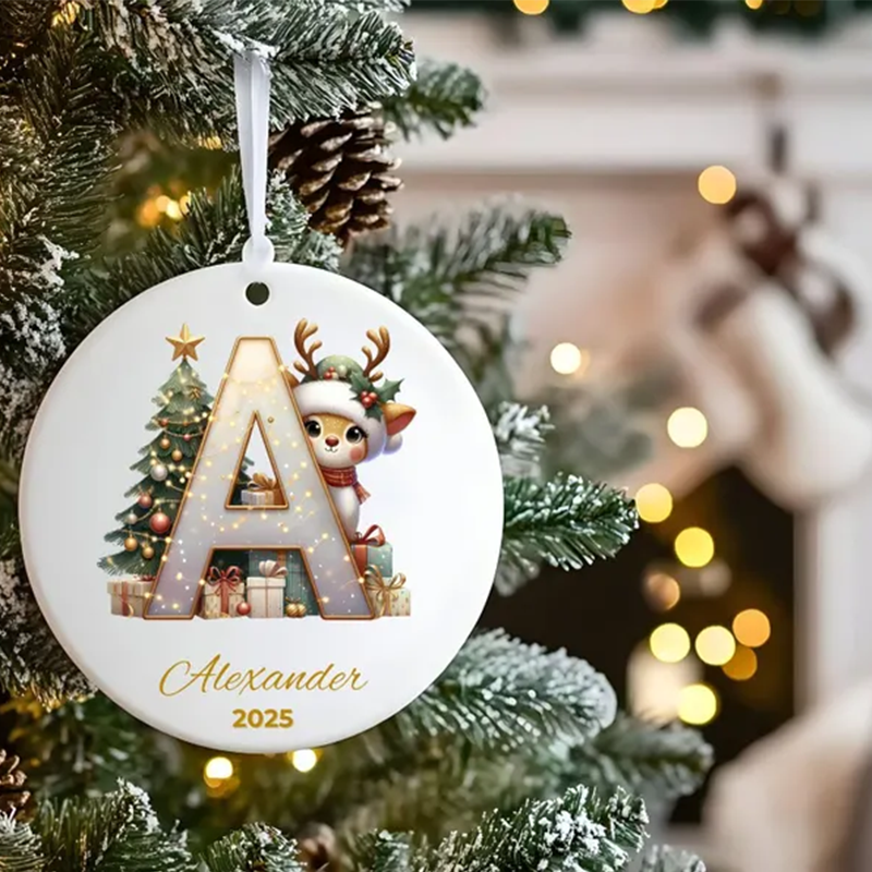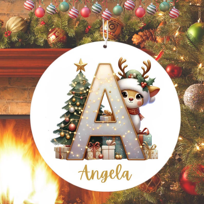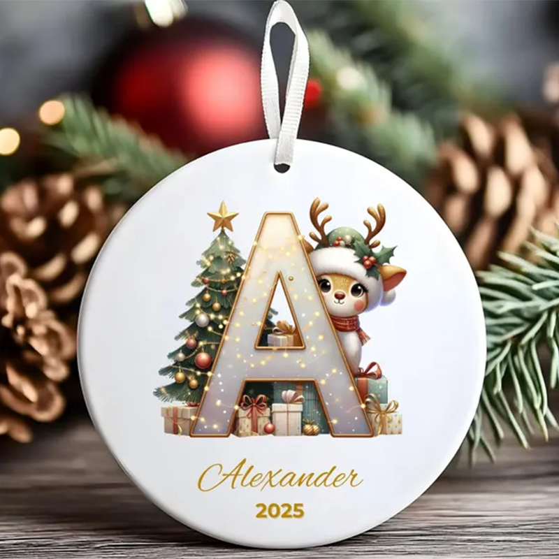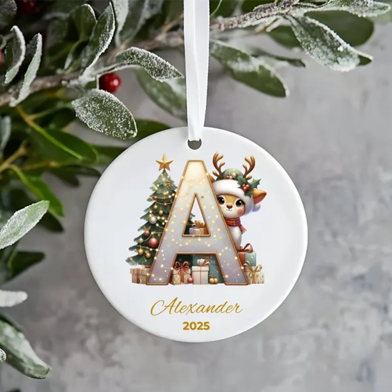 Personalized Christmas Letter Ornament 2025 Custom Family Initial Reindeer Decoration