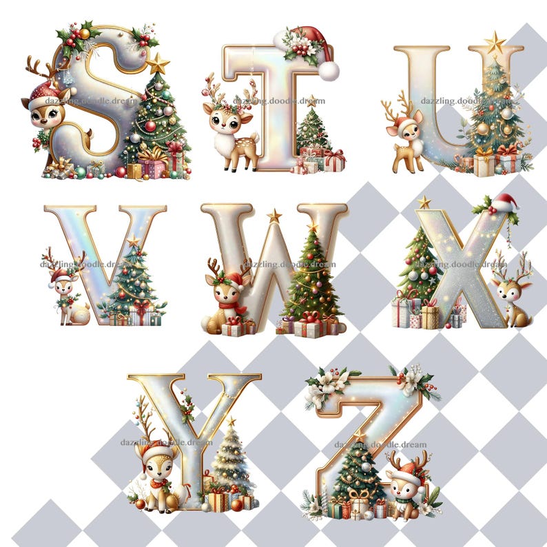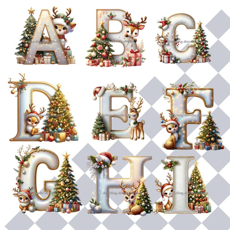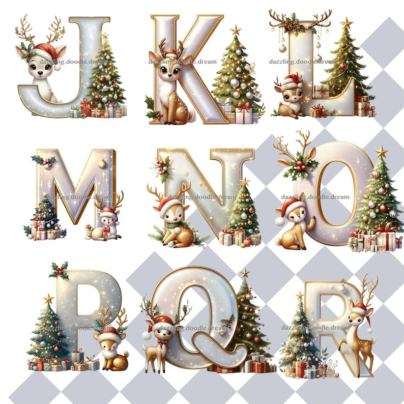 Reindeer letter ornaments personalized stocking tags for Christmas gifts name tags