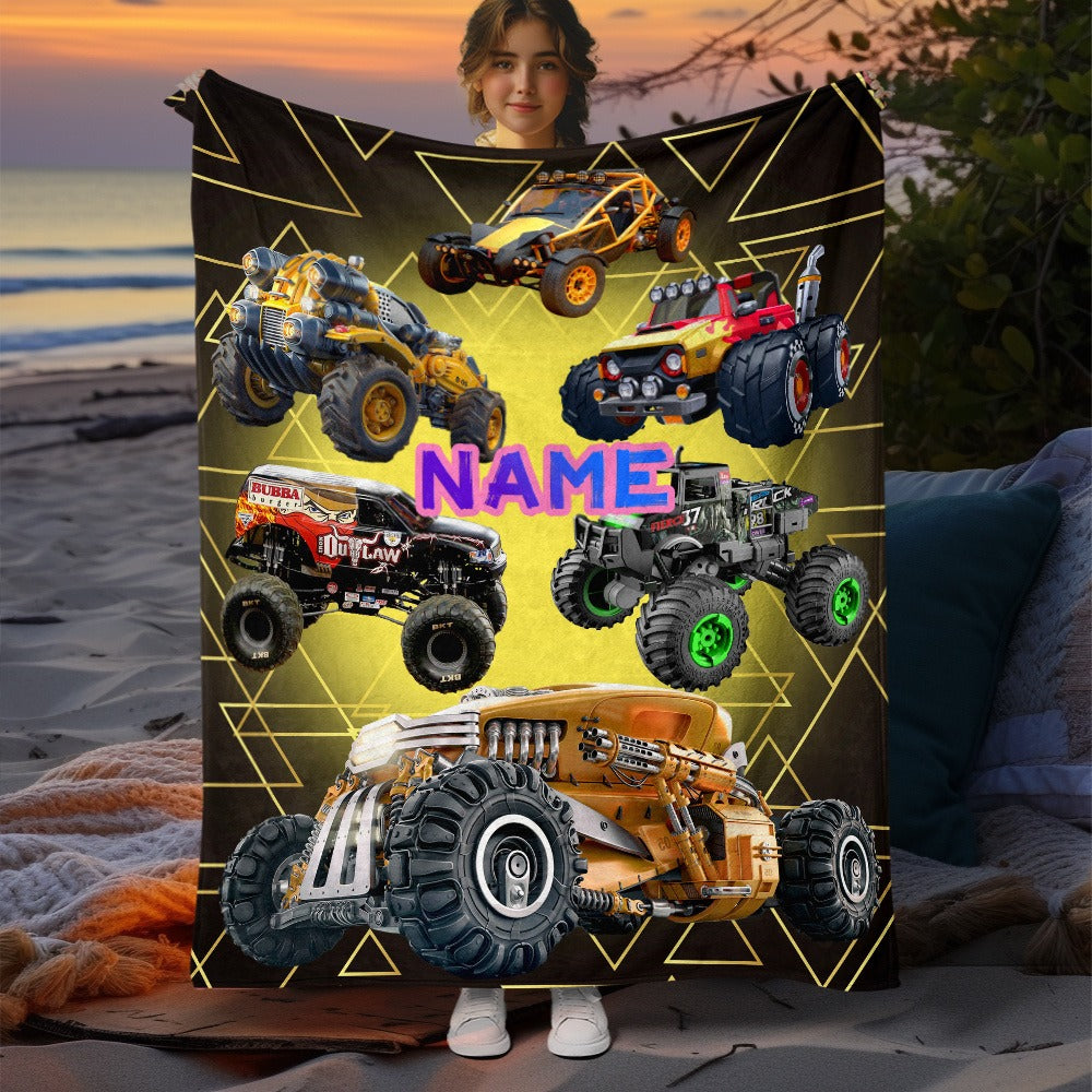 Custom Name Cozy Blanket: Featuring Cool Cross Country Vehicles