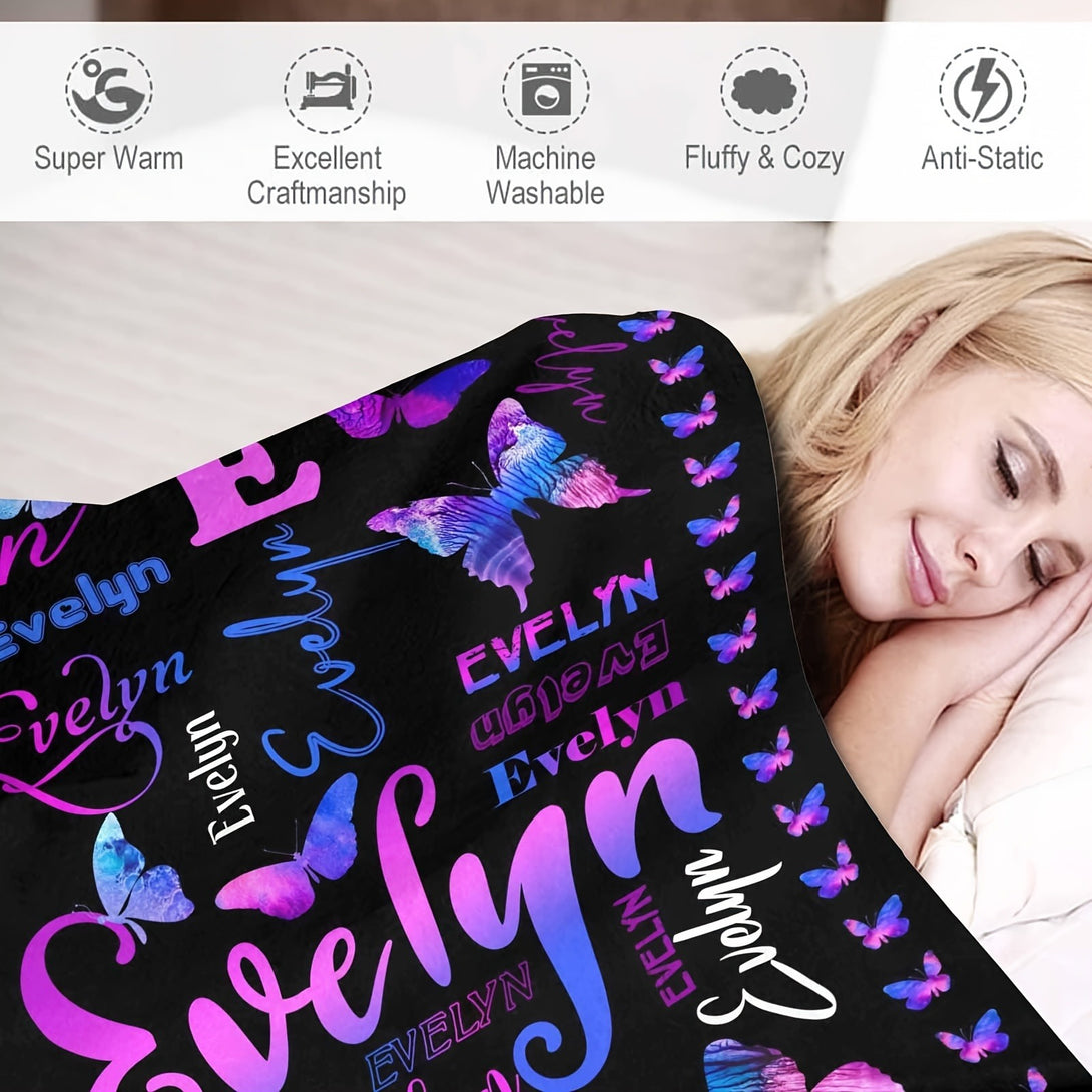 Custom Name Flannel Blanket with Vibrant Butterfly Print