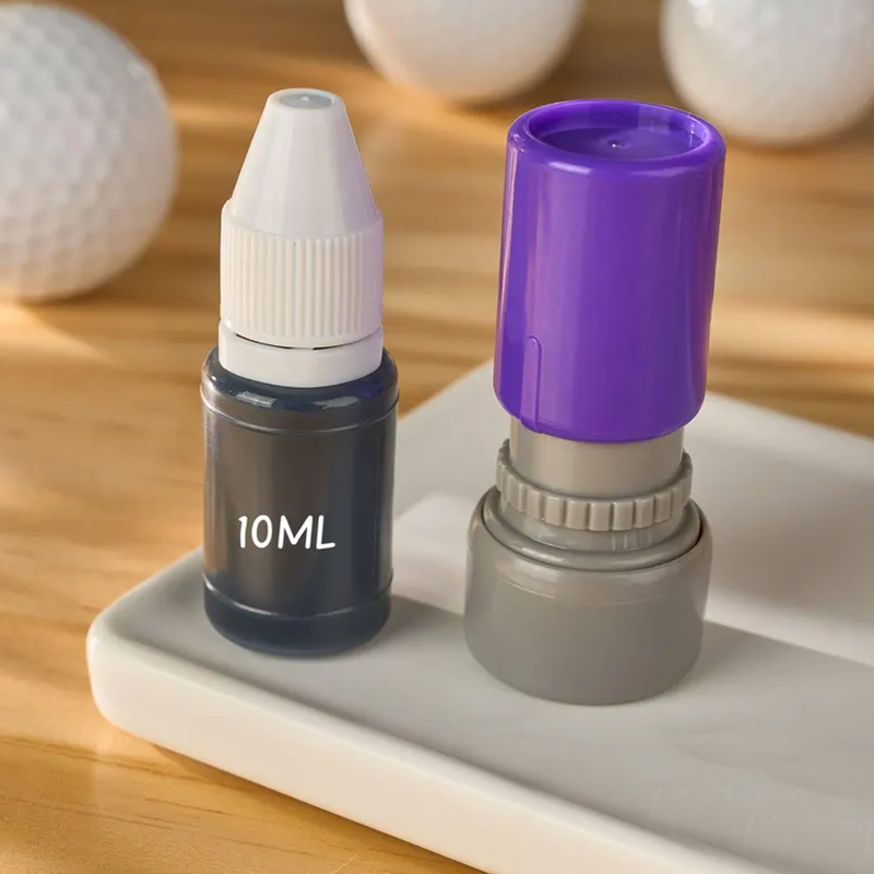 The golf ball ink features **quick-drying properties**, which is a key characteristic to ensure it adheres well to the smooth surface of golf balls. Each stamp comes pre-filled with ink for immediate use. However, due to its fast-drying nature, some ink evaporation during shipping may occur, which is unavoidable.