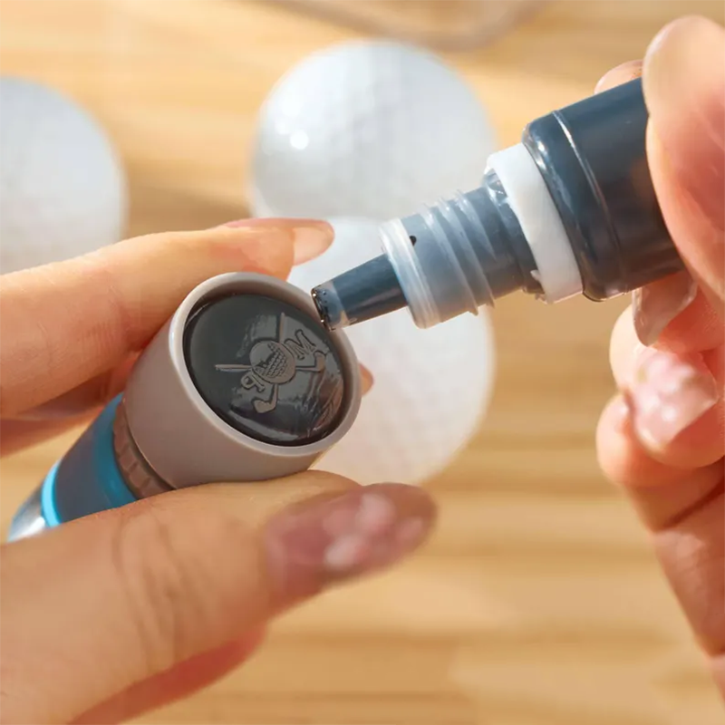 The golf ball ink features **quick-drying properties**, which is a key characteristic to ensure it adheres well to the smooth surface of golf balls. Each stamp comes pre-filled with ink for immediate use. However, due to its fast-drying nature, some ink evaporation during shipping may occur, which is unavoidable.