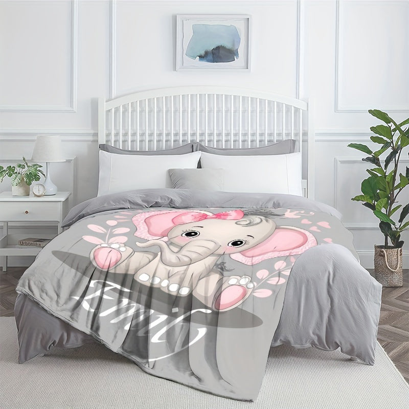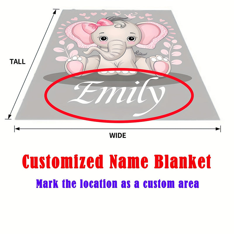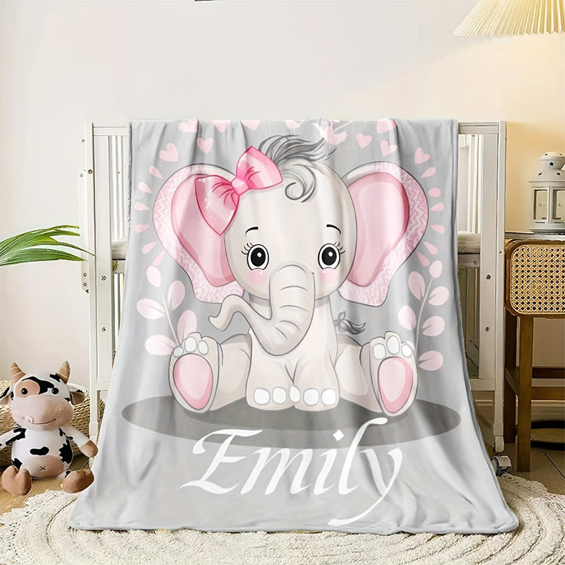 Custom Name Personalized Elephant Flannel Throw Blanket