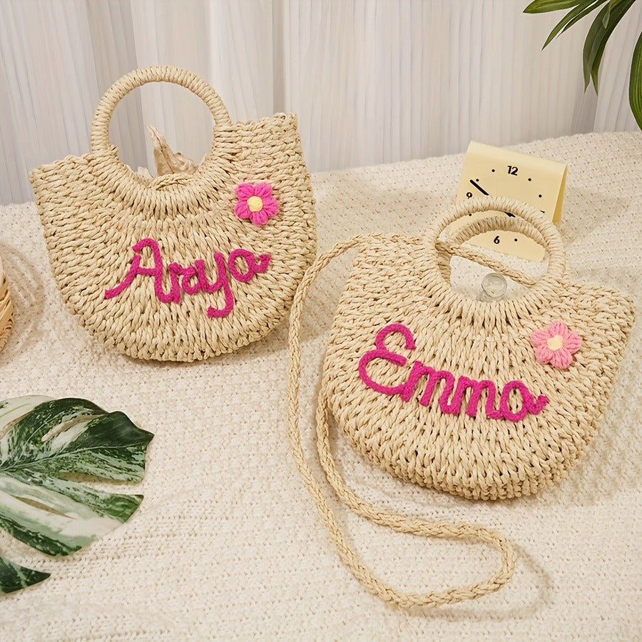 Make a statement with your very own Personalized Name Straw Bag – the perfect blend of style and uniqueness! Handcrafted with high-quality straw, this trendy tote is customized just for you with a beautifully embroidered name of your choice.