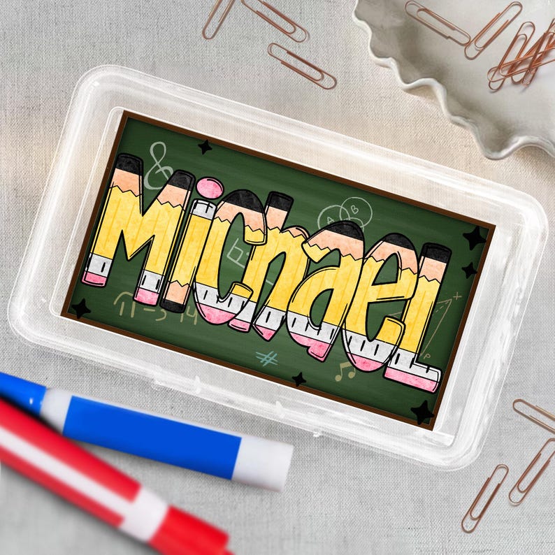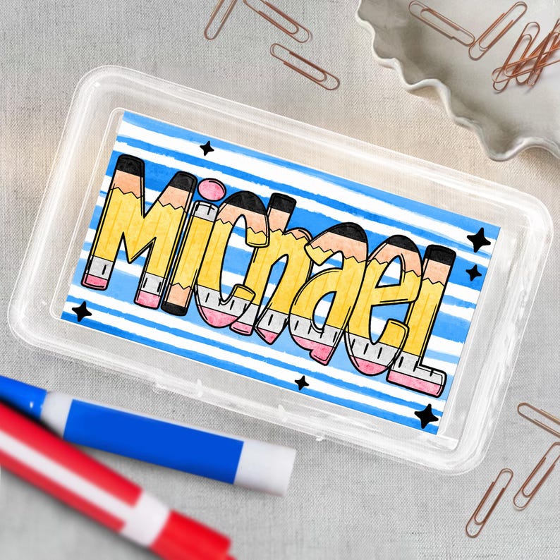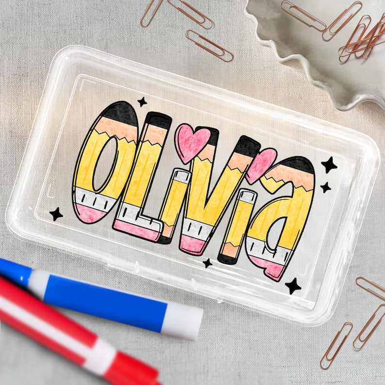 Upgrade your child's school supplies with our custom pencil boxes. These personalized cases are perfect for back-to-school and make a great gift for kids. Keep your child organized and stylish with a custom pencil box featuring their name. Suitable for both boys and girls.