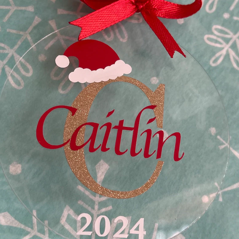 Looking for a personalized gift for your friends, family, coworkers, etc? Personalize a clear acrylic ornament with their initial and name!