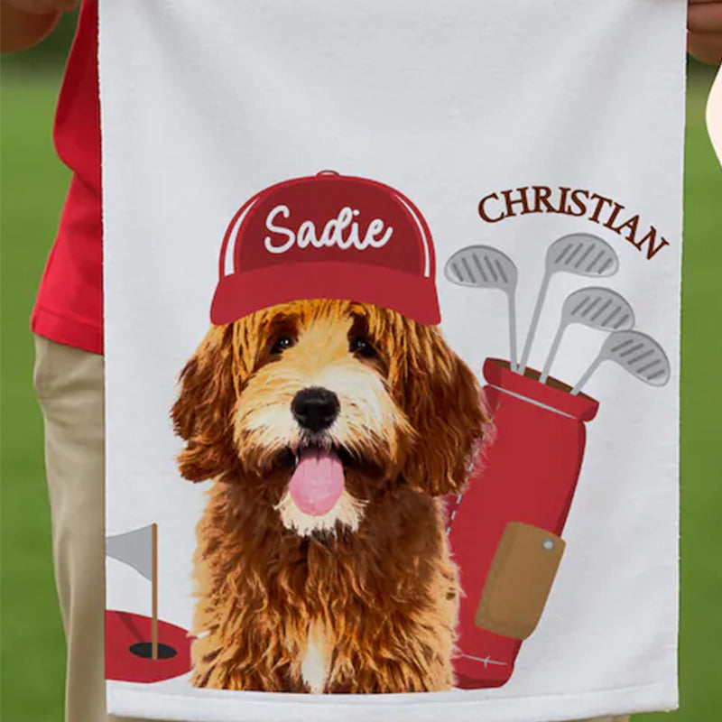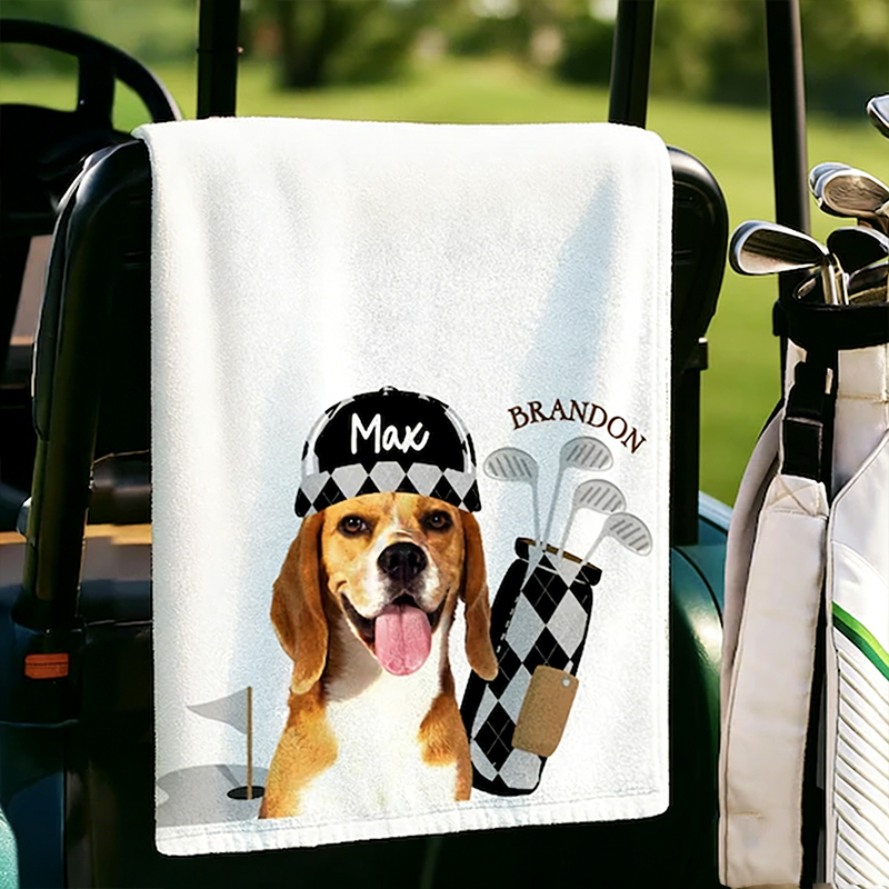 Add a touch of personality to your golf towels featuring your best friend! This golf towel is not only beautiful but also made from a durable polyester blend, these towels are perfect for cleaning and drying your equipment, ensuring you stay in top form on the course.