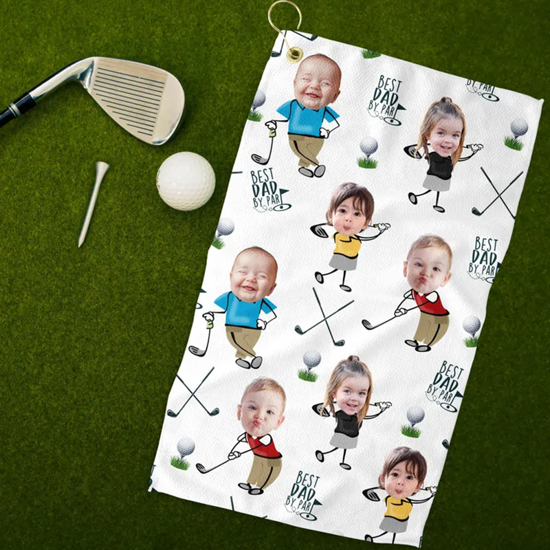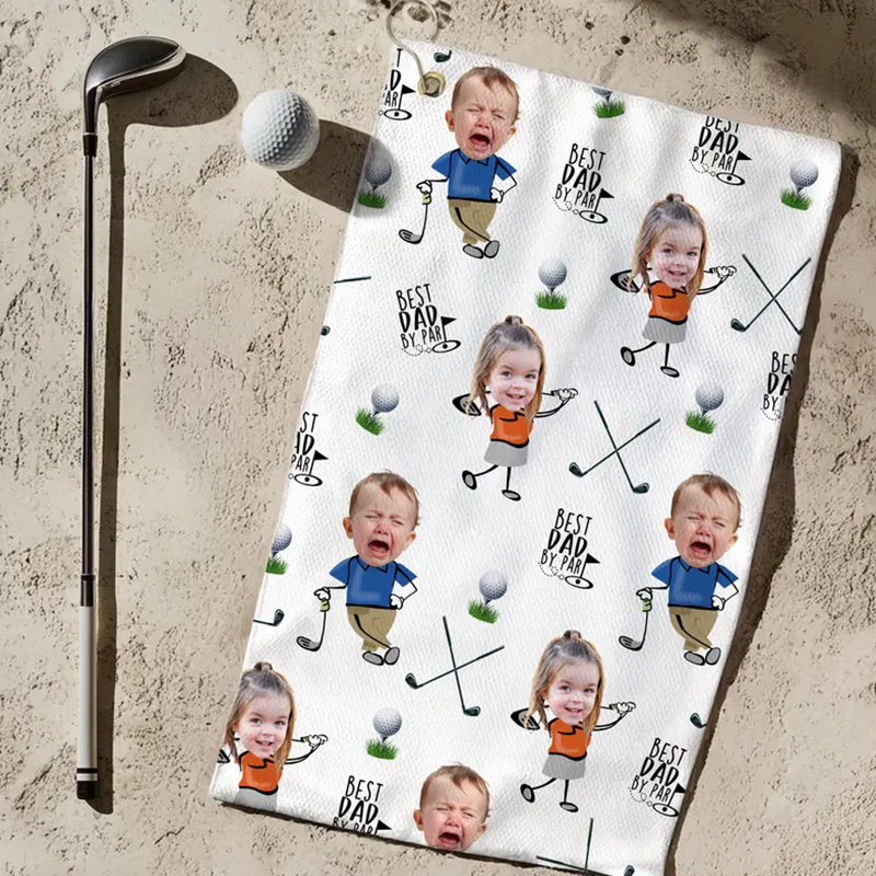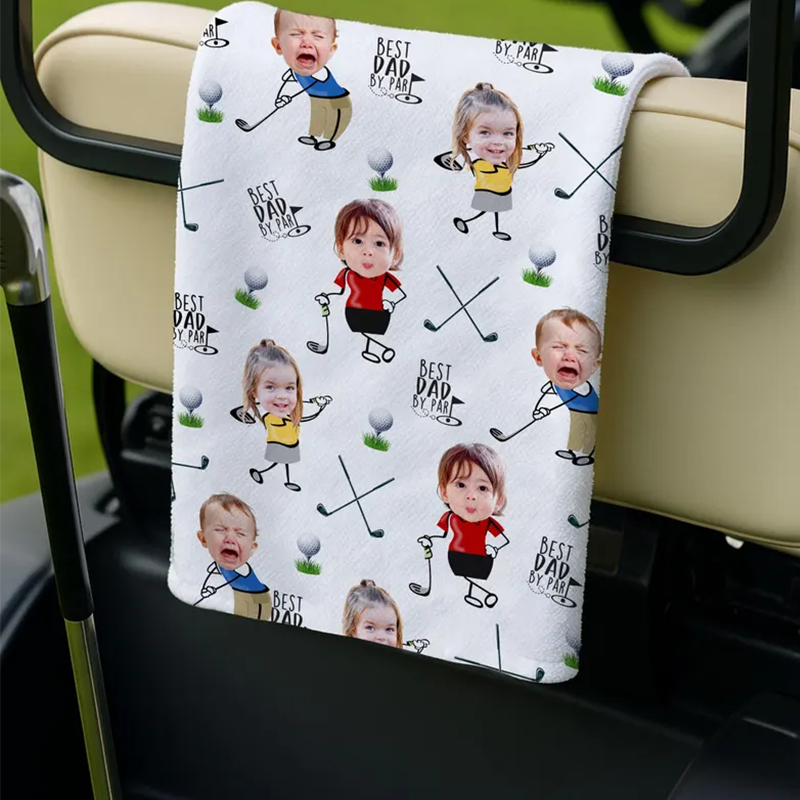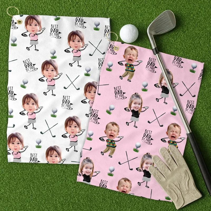 Custom Photo Golf Towel With Baby Face, Custom Dad Golf Towel With Kids Faces, Best Dad By Par Golf Towel, Golf Lovers Gift
