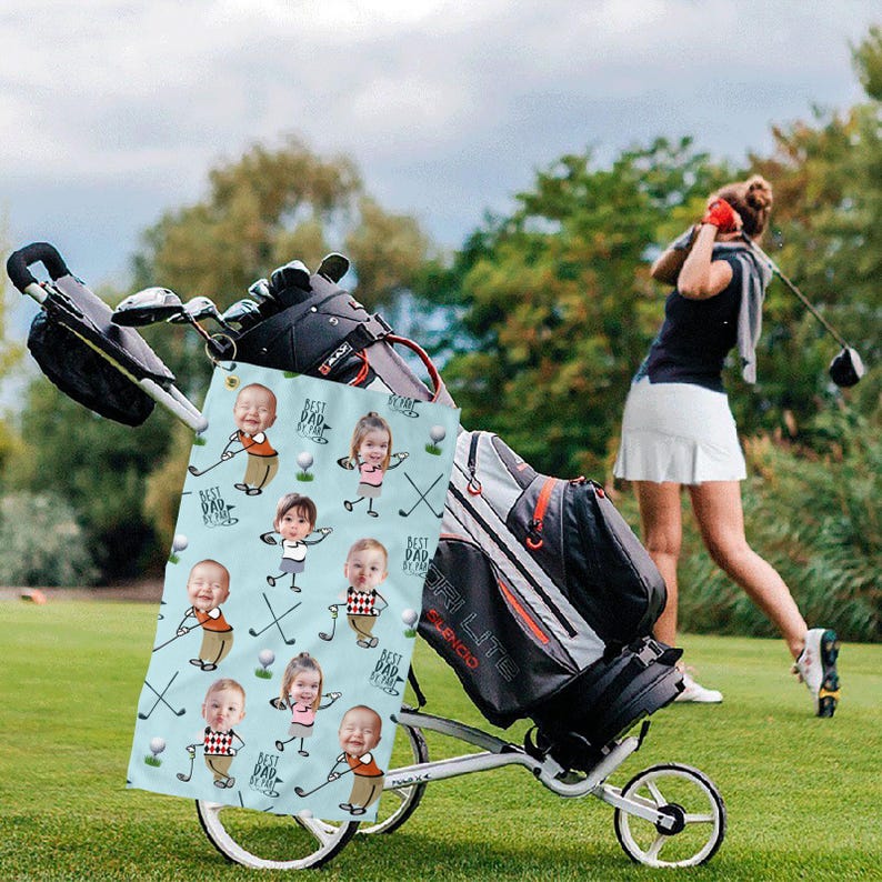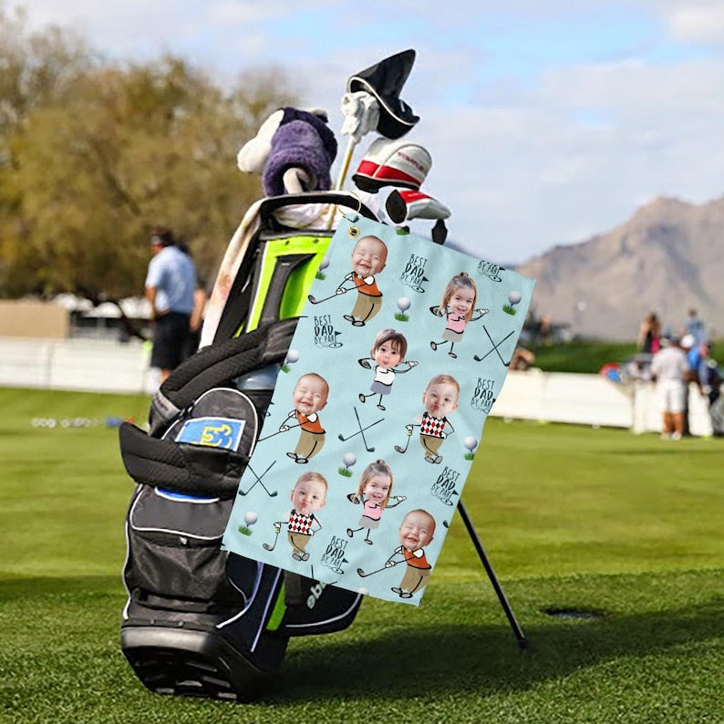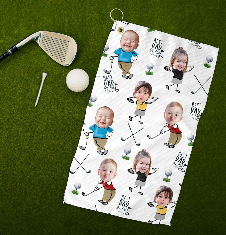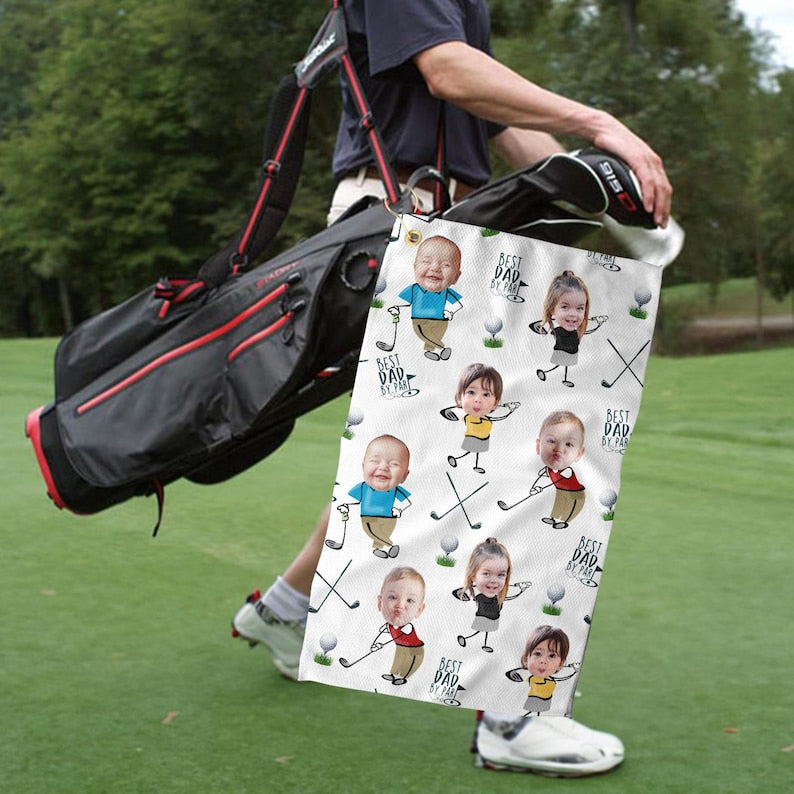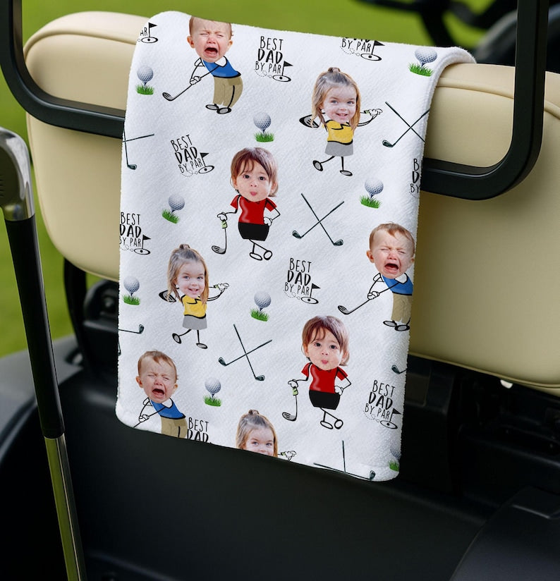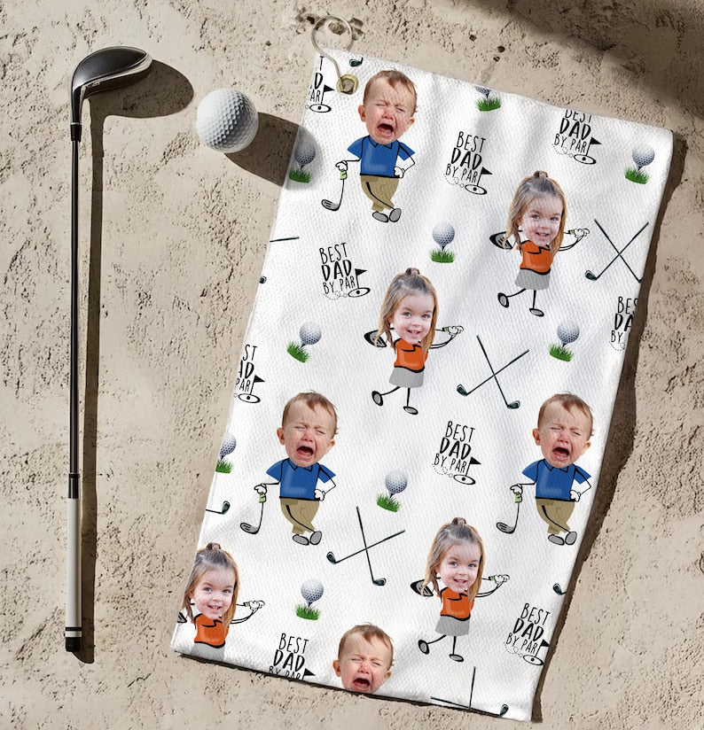 Custom Photo Golf Towel With Baby Face, Custom Dad Golf Towel With Kids Faces, Best Dad By Par Golf Towel, Golf Lovers Gift