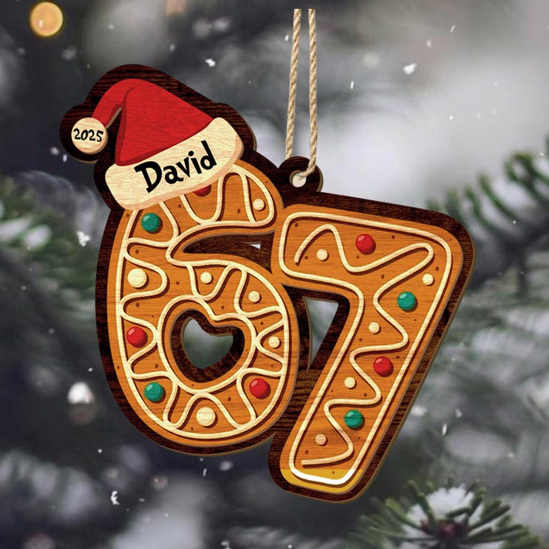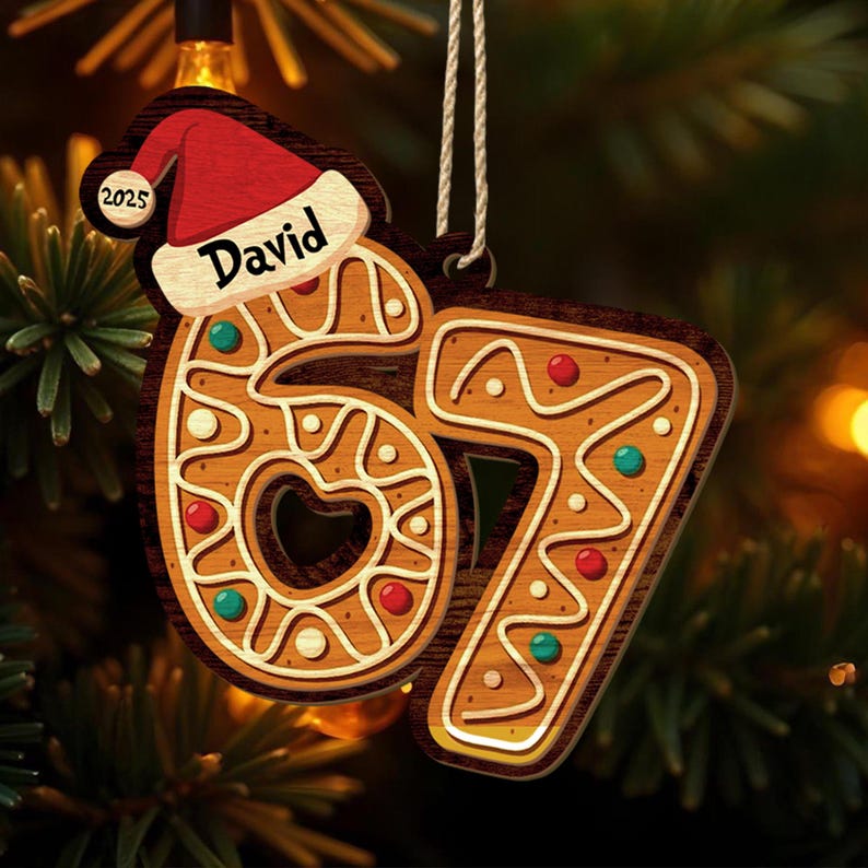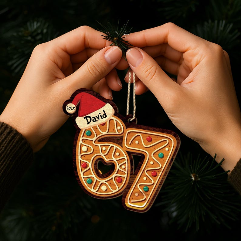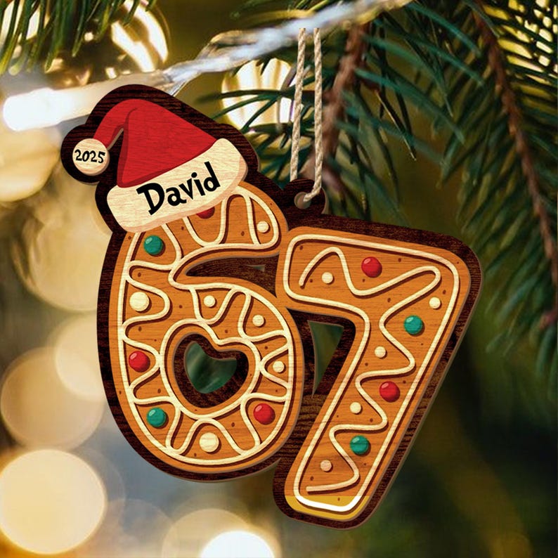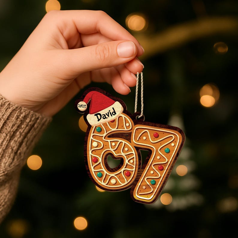 Gingerbread “6 7” Personalized Ornament – Teen Slang Christmas Gift 2025