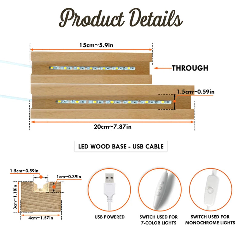 2D Acrylic Piece: The printed acrylic piece is 15mm thick, creating a visually appealing stereoscopic 3D image with vibrant and unique lighting effects. It provides excellent illumination and sparks creativity.