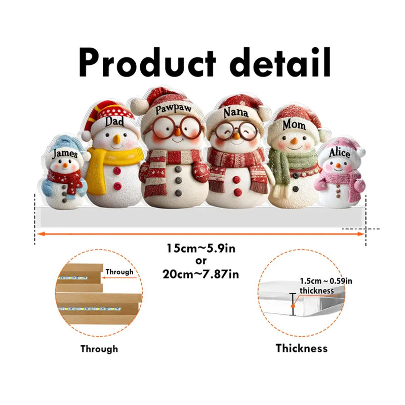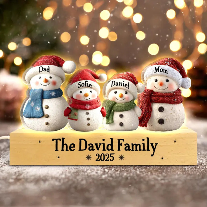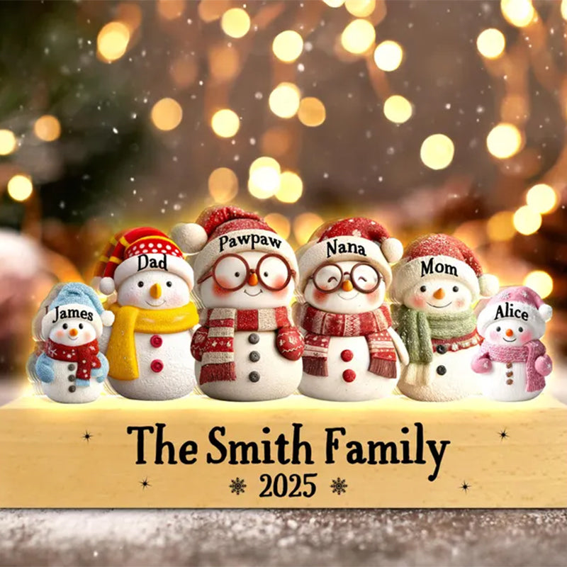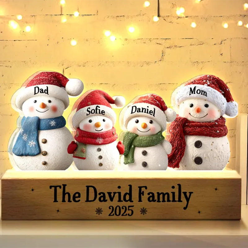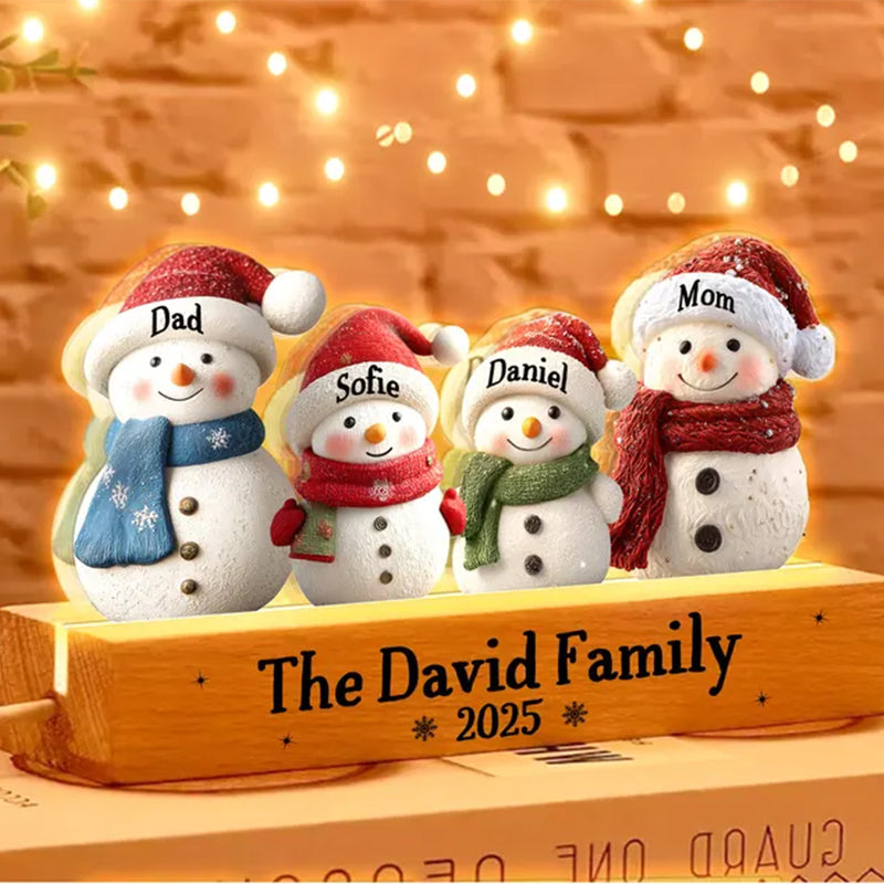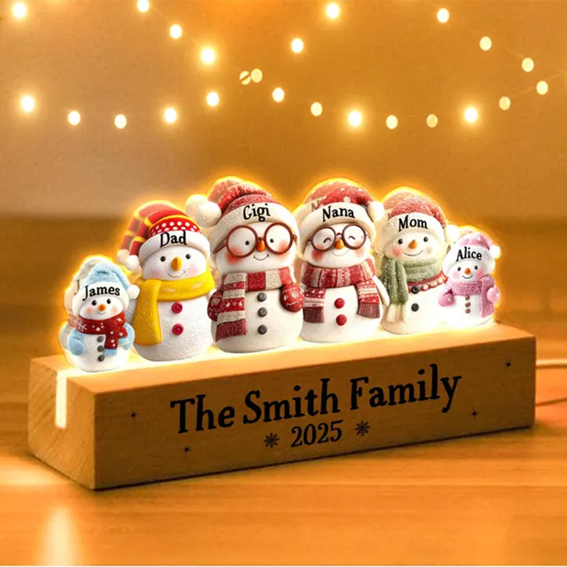 Custom Snowman Family Christmas Night Light, Snowman Christmas Decor, Grandparent Gift, Grandma Christmas Gift, Housewarming Gift