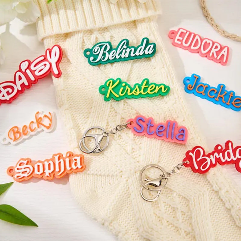 Whether you want to add a unique Christmas greeting to a stocking, or add a pop of color to a child's water bottle, backpack, or luggage bag, this custom name keychain is a heartwarming companion! Each letter is perfectly rounded and smooth, and available in a variety of colors.