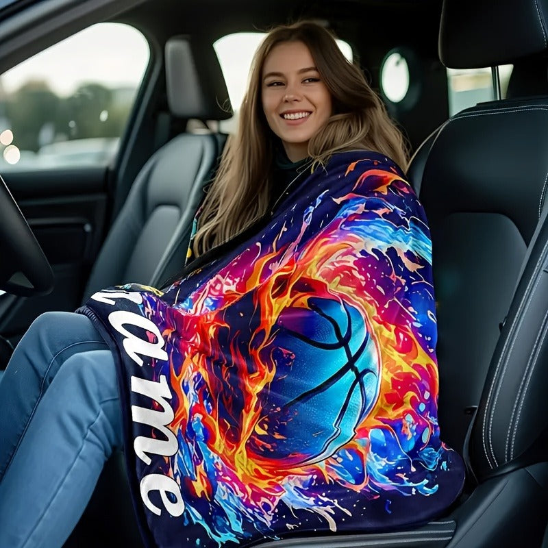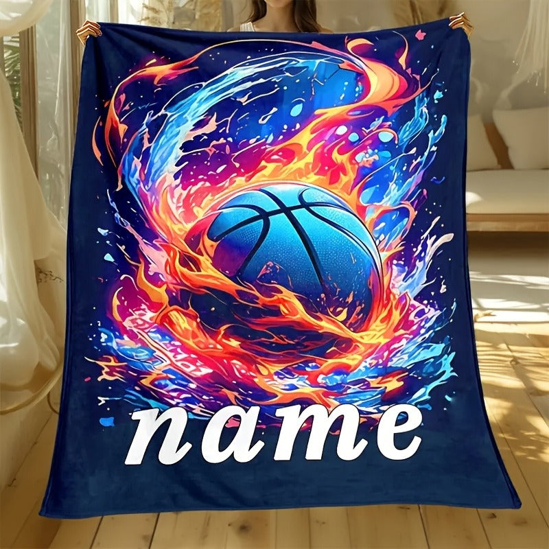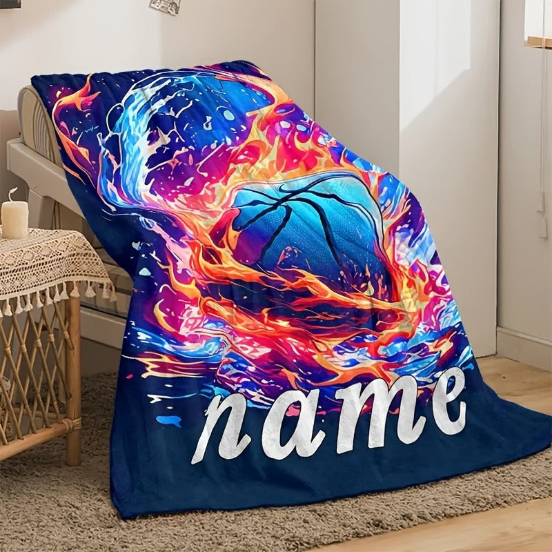 Custom Text Creative Basketball Fire and Ice Print Flannel Blanket