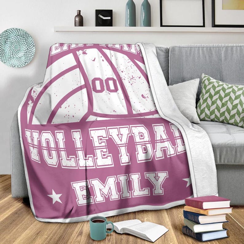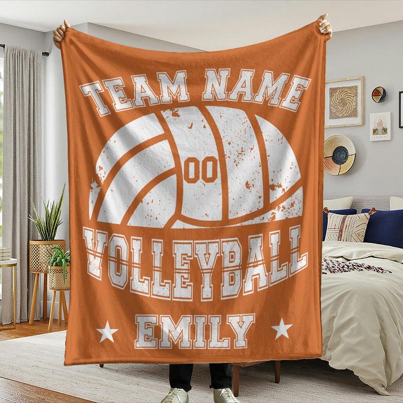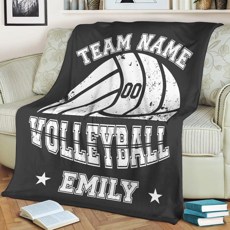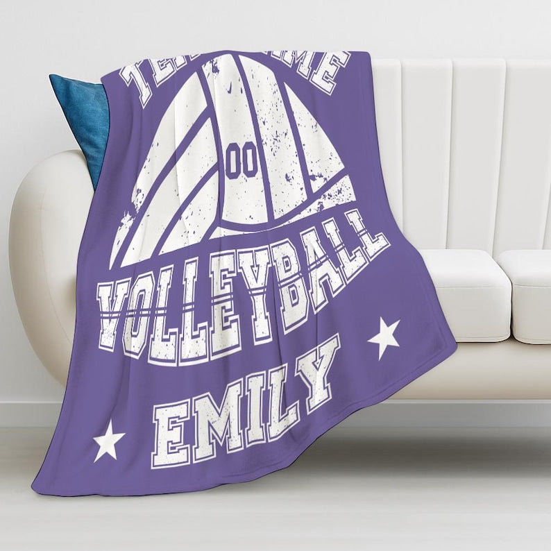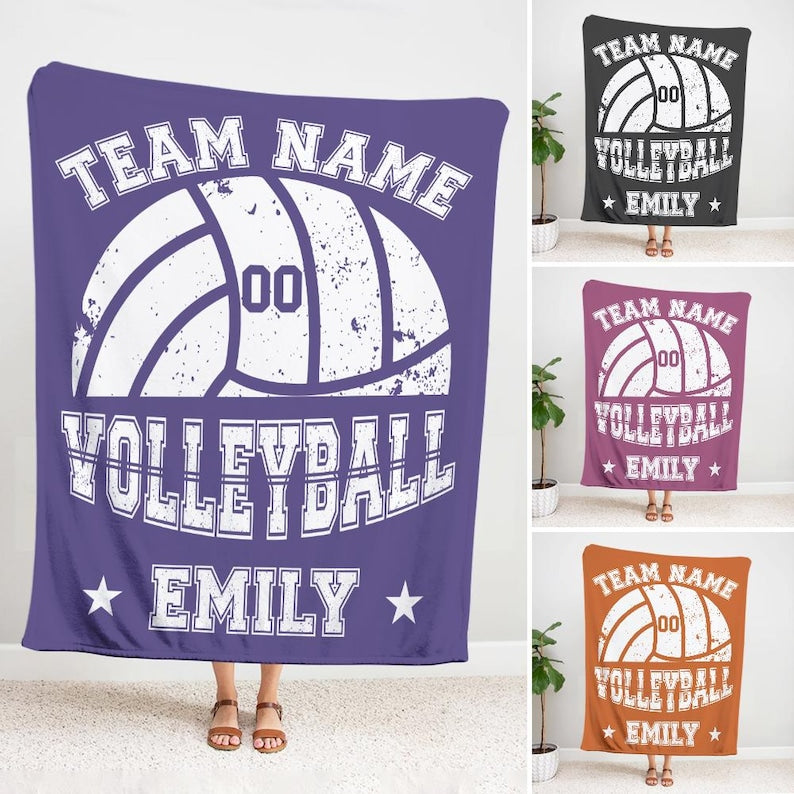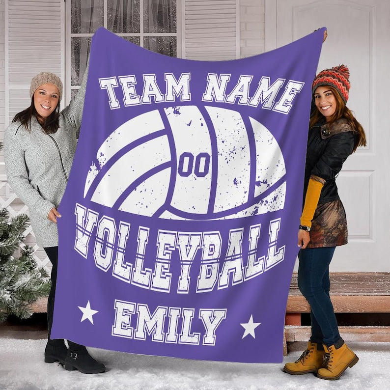 Custom Volleyball Player Blanket, Personalized Team Name & Number Fleece Throw,